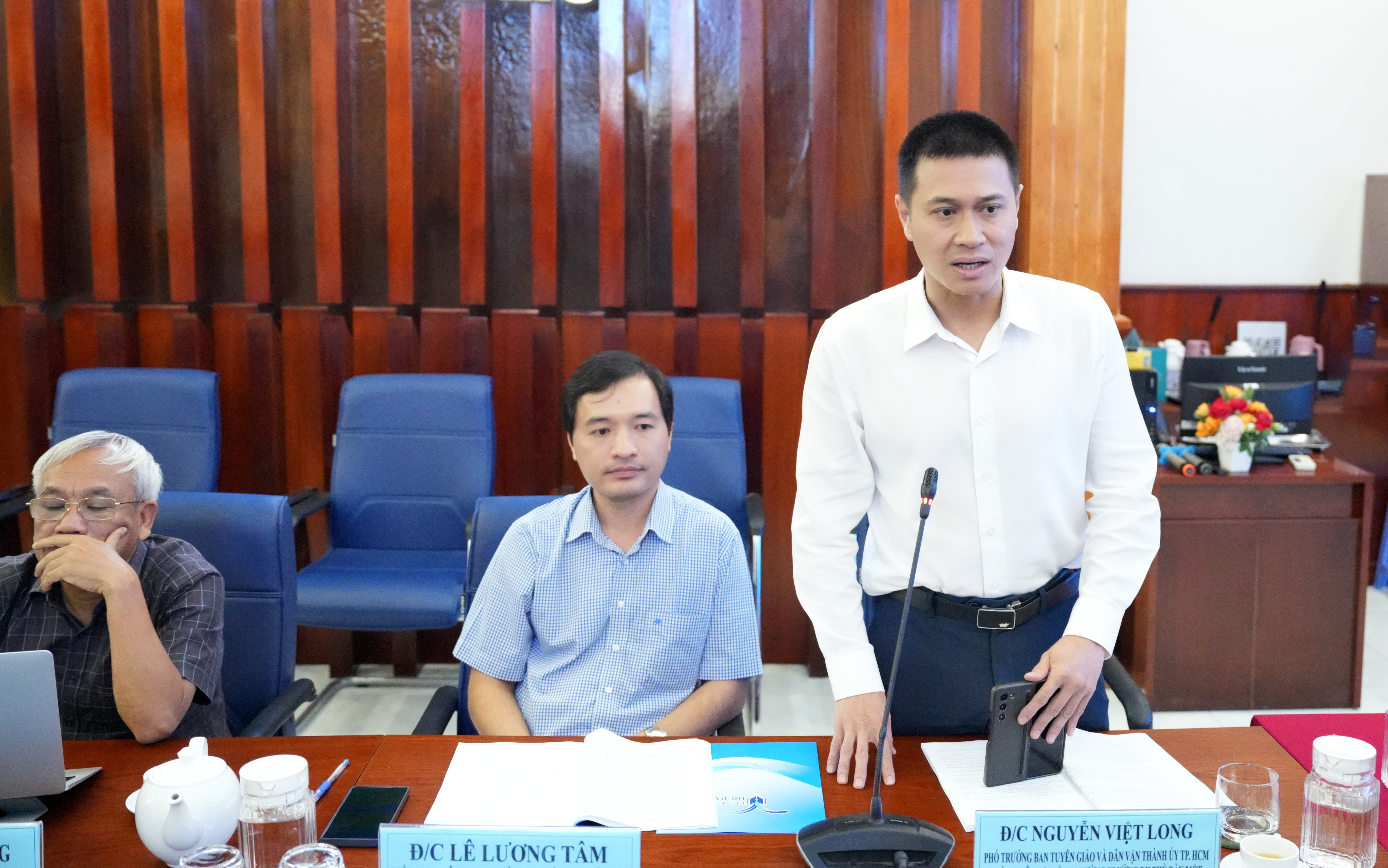 Phát biểu chỉ đạo tại Hội nghị, đ/c Nguyễn Việt Long – Phó Trưởng Ban Tuyên giáo và Dân vận Thành ủy ghi nhận tinh thần trách nhiệm, sự nghiêm túc và cách làm bài bản của Đảng ủy Trường trong công tác kiểm điểm, đánh giá và xếp loại chất lượng tổ chức Đảng, đảng viên và tập thể, cá nhân lãnh đạo; đồng thời biểu dương tinh thần “tự soi – tự sửa – tự nhận” thể hiện bản lĩnh chính trị và ý thức nêu gương của đội ngũ cán bộ chủ chốt. Phát huy những kết quả đã đạt được, đ/c Nguyễn Việt Long đề nghị, Đảng ủy Trường tiếp tục tăng cường công tác chính trị tư tưởng, bảo đảm sự thống nhất trong toàn Đảng bộ, nhất là trong bối cảnh nhà trường sáp nhập về vùng TP. Hồ Chí Minh với yêu cầu nhiệm vụ ngày càng cao; chủ động, quyết liệt triển khai nhiệm vụ “Bình dân học vụ trong kỷ nguyên số”, thúc đẩy chuyển đổi số đồng bộ, nâng cao năng lực số cho cán bộ, đảng viên và sinh viên. Đồng chí cũng nhấn mạnh yêu cầu xác định nghiên cứu khoa học, công nghệ và đổi mới sáng tạo là trụ cột quan trọng, tập trung phát triển các đề tài, sản phẩm có tính ứng dụng cao và các nghiên cứu có giá trị phục vụ công tác dự báo, tham mưu cho Thành phố. Cùng với đó, nhà trường cần quan tâm xây dựng và lan tỏa không gian văn hóa TP. Hồ Chí Minh, phát huy vai trò xung kích của đoàn viên, sinh viên qua các phong trào thi đua, hoạt động văn hóa – văn nghệ – thể thao và chương trình tình nguyện. Qua đó, góp phần bồi dưỡng đội ngũ trí thức trẻ có bản lĩnh chính trị, phẩm chất đạo đức và năng lực chuyên môn, sẵn sàng đáp ứng yêu cầu phát triển của Thành phố trong giai đoạn mới.
