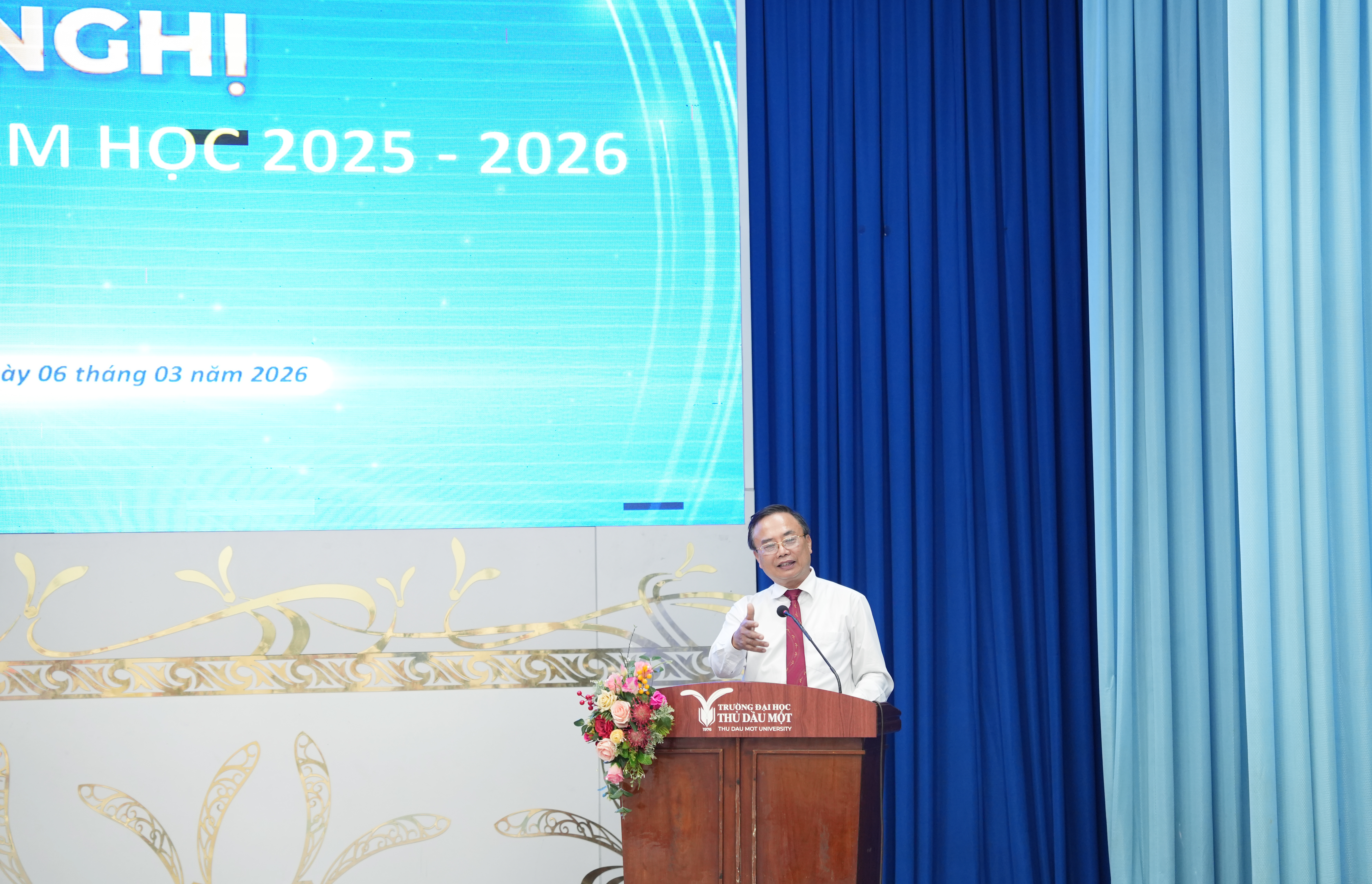 Ngày 06/3/2026, Trường Đại học Thủ Dầu Một tổ chức Hội nghị sơ kết học kỳ I năm học 2025 – 2026, đồng thời triển khai phương hướng, nhiệm vụ trọng tâm cho học kỳ II.