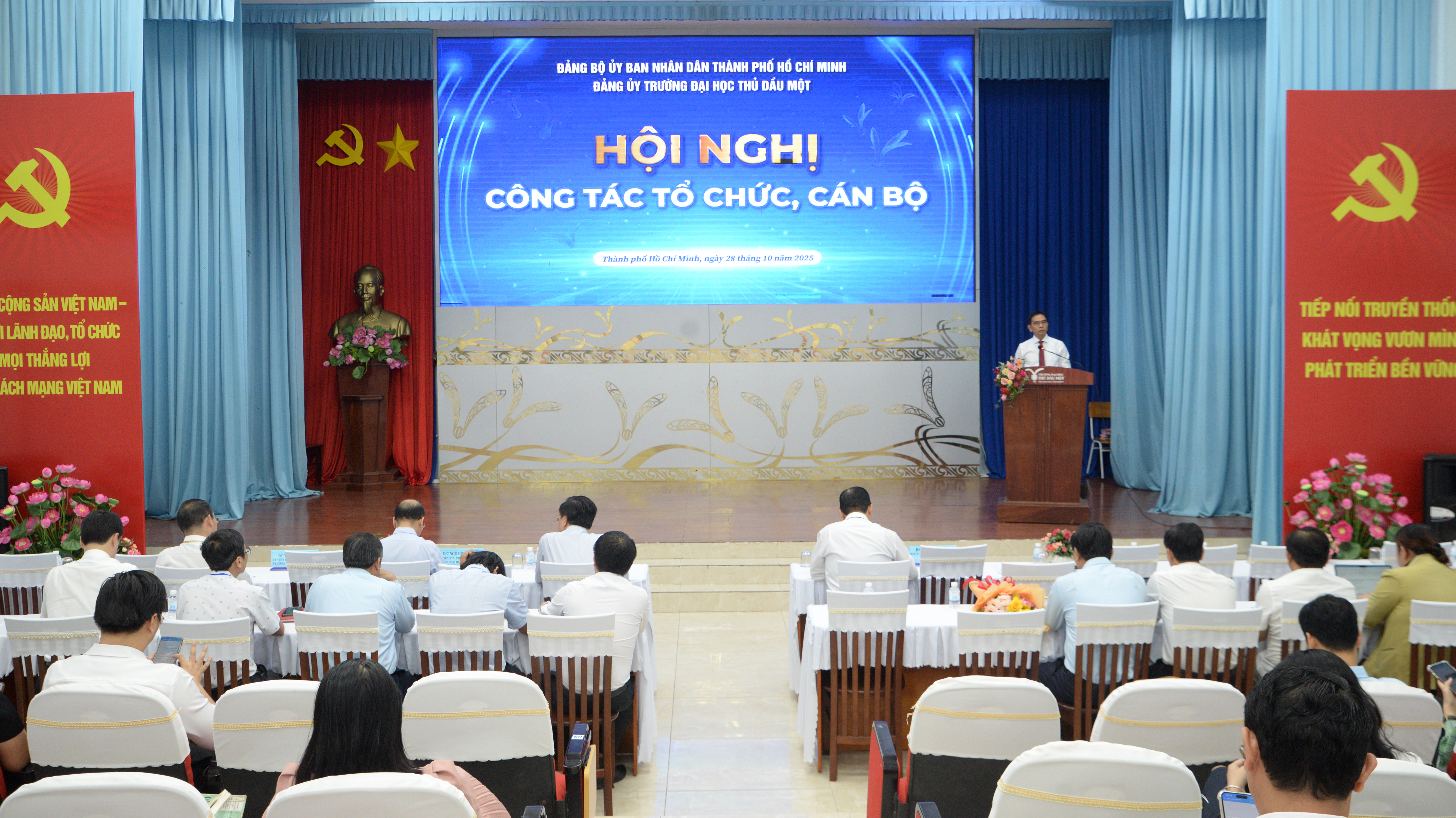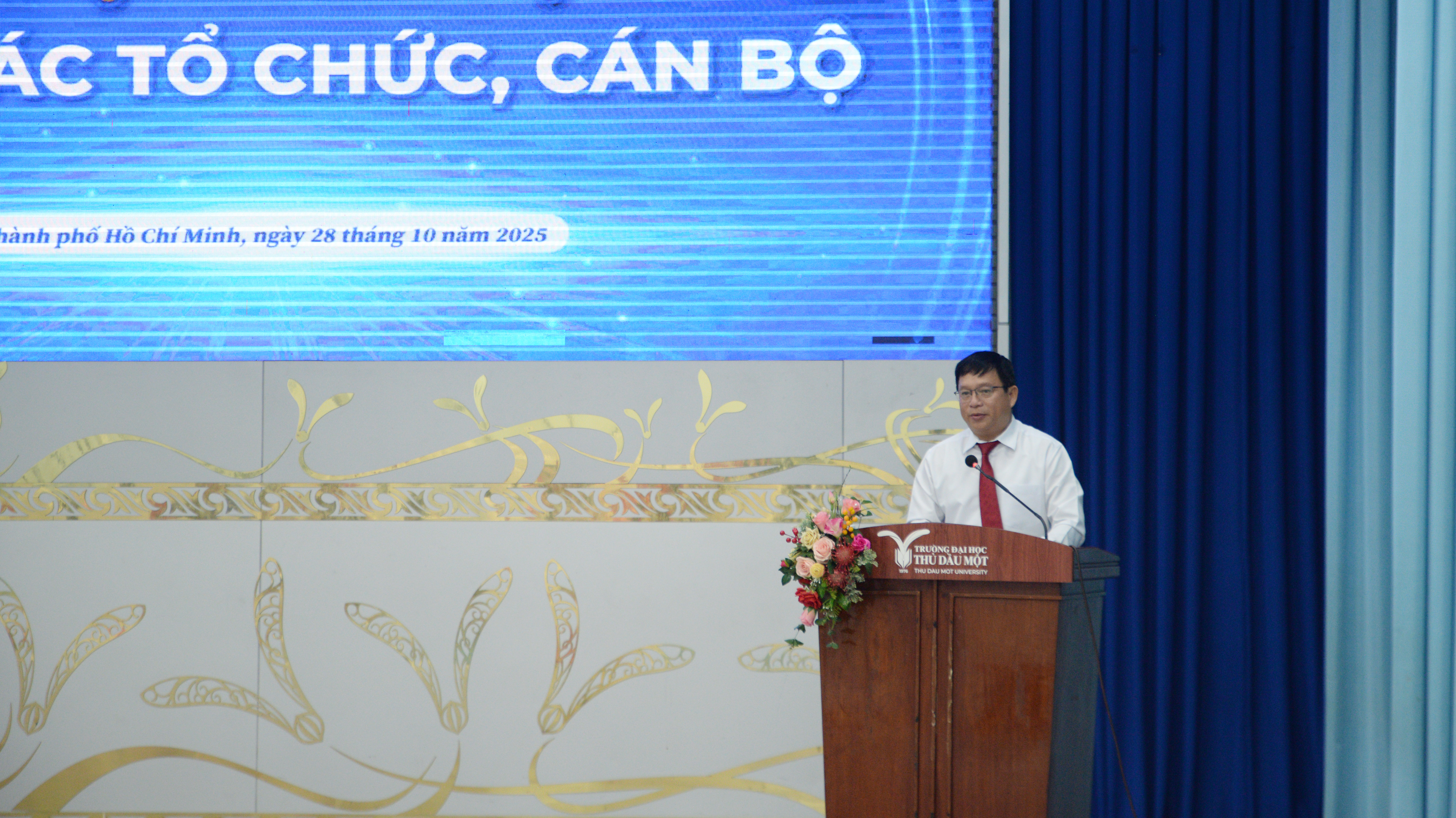 Phát biểu chỉ đạo tại Hội nghị, PGS.TS. Lê Tuấn Anh – Bí thư Đảng ủy, Chủ tịch Hội đồng Trường nhấn mạnh, trong bối cảnh thực hiện Nghị quyết số 71-NQ/TW ngày 22/8/2025 của Bộ Chính trị về đột phá phát triển giáo dục và đào tạo, trong đó chú trọng tăng cường vai trò lãnh đạo toàn diện, trực tiếp của Đảng trong các cơ sở giáo dục đại học. Chính vì vậy, việc tổ chức Hội nghị trao quyết định kiện toàn cấp ủy là bước đi quan trọng trong quá trình củng cố, sắp xếp tổ chức Đảng phù hợp với mô hình quản trị mới. Đây là nhiệm vụ mang tính chiến lược, nhằm tinh gọn bộ máy, nâng cao hiệu lực lãnh đạo và hiệu quả quản trị, góp phần hiện thực hóa định hướng phát triển Trường Đại học Thủ Dầu Một trở thành “Đại học đổi mới sáng tạo gắn kết công nghiệp vì sự phát triển bền vững”. Nhấn mạnh vai trò và trách nhiệm của các cấp ủy mới, PGS.TS. Lê Tuấn Anh đề nghị, mỗi cấp ủy cần phát huy bản lĩnh chính trị, tinh thần đoàn kết, khát vọng đổi mới và trách nhiệm nêu gương; gắn công tác xây dựng Đảng với việc thực hiện nhiệm vụ chuyên môn, đào tạo, nghiên cứu khoa học, đổi mới sáng tạo, chuyển đổi số, hợp tác quốc tế và phục vụ cộng đồng. Đồng thời, cần thực hiện nghiêm nguyên tắc tập trung dân chủ, tự phê bình và phê bình, đảm bảo tính công khai, minh bạch, dân chủ và trách nhiệm giải trình, vì mục tiêu phát triển của Trường Đại học Thủ Dầu Một theo hướng bền vững, hiệu quả và uy tín. PGS.TS. Lê Tuấn Anh kêu gọi toàn thể đảng viên và cán bộ, viên chức cùng nhau xây dựng Đảng bộ Nhà trường trong sạch, vững mạnh, đổi mới, sáng tạo, góp phần đưa Trường Đại học Thủ Dầu Một ngày càng phát triển, khẳng định vị thế là trung tâm đào tạo, nghiên cứu và đổi mới sáng tạo hàng đầu của khu vực và cả nước.