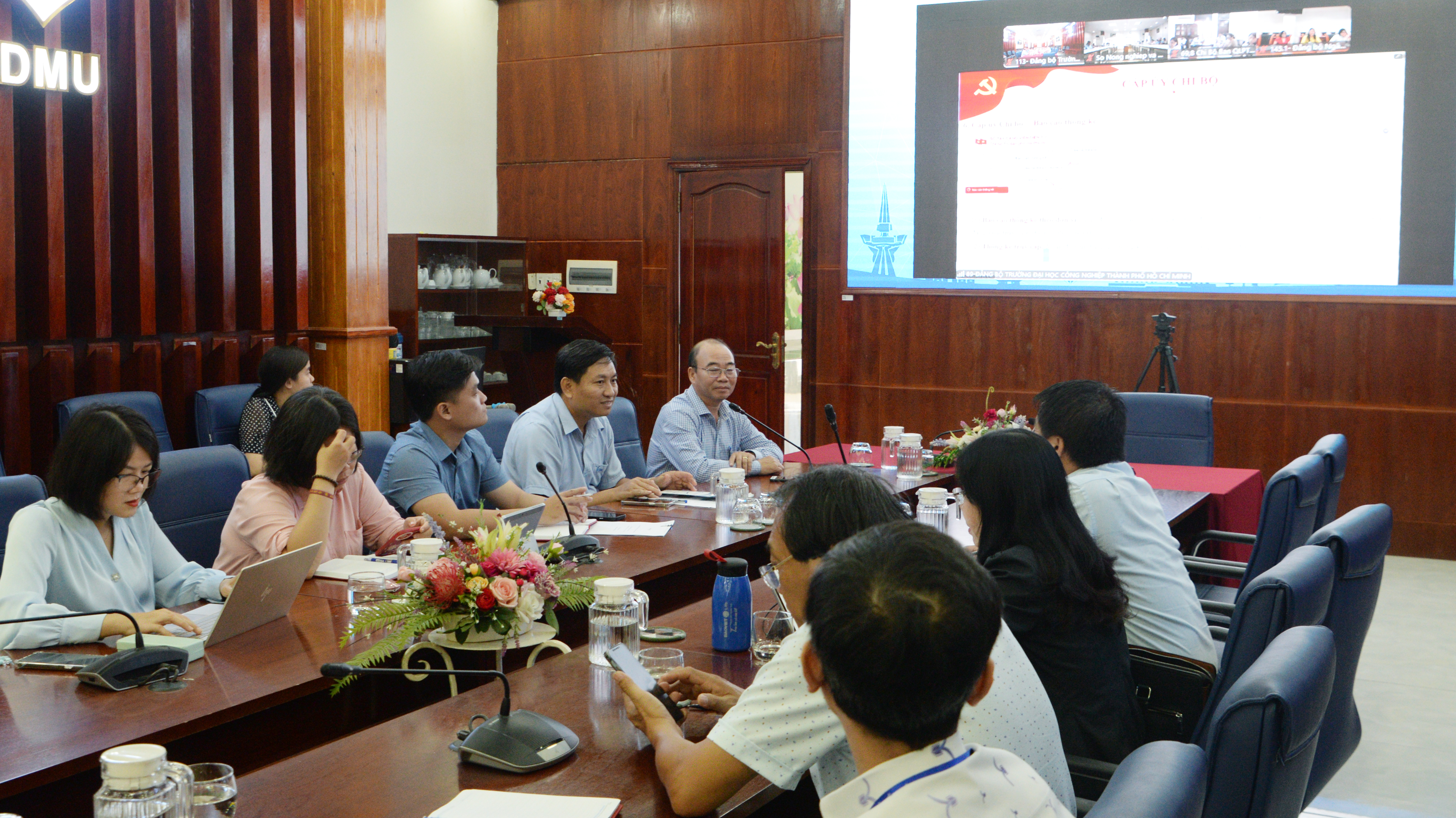 Tại điểm cầu Trường Đại học Thủ Dầu Một, TS. Ngô Hồng Điệp – Ủy viên Ban Thường vụ Đảng ủy, Phó Hiệu trưởng, cùng các đồng chí trong Ban Chấp hành Đảng bộ, cấp ủy các chi bộ và đảng bộ bộ phận tham dự hội nghị