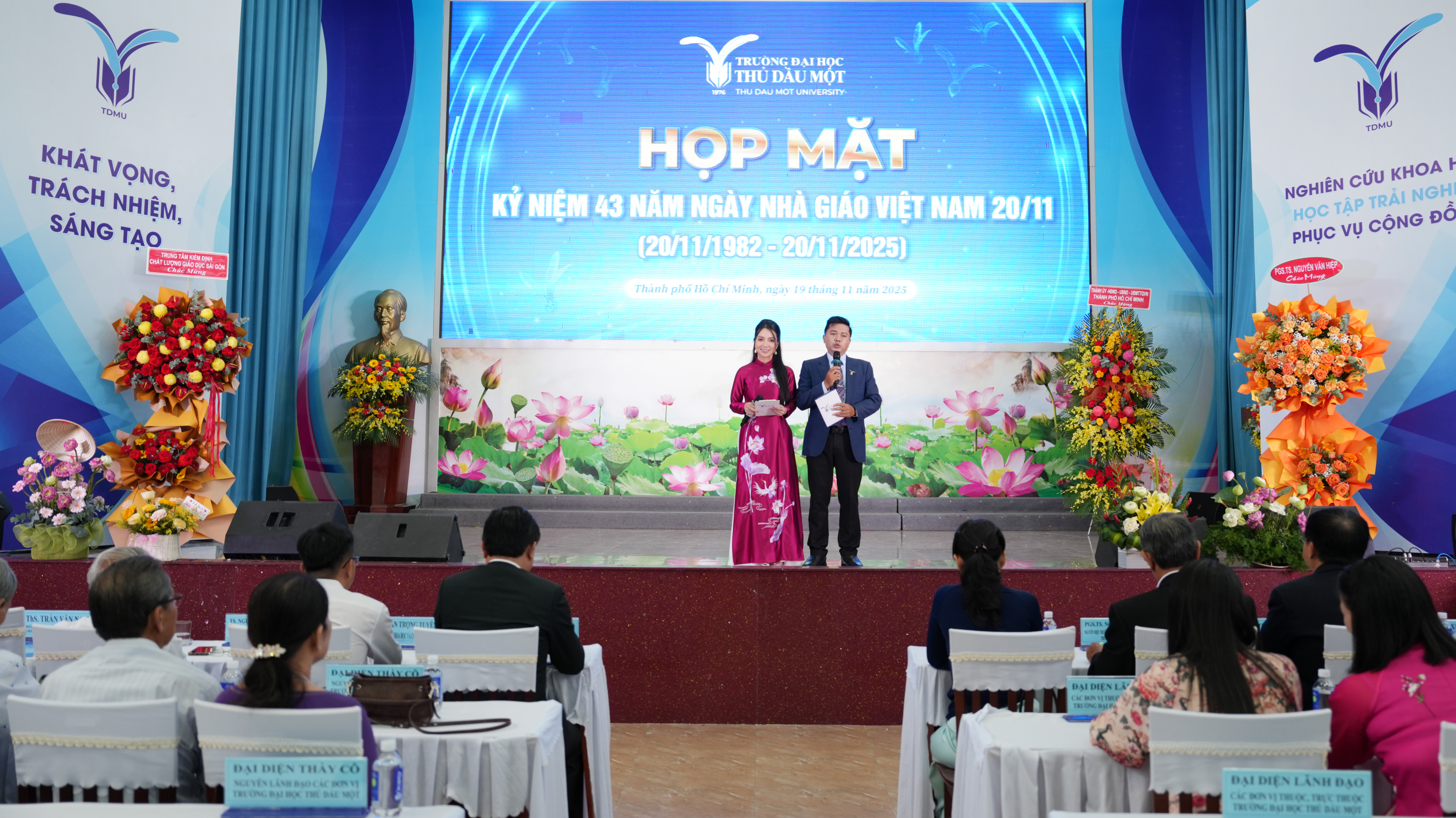 Ngày 19/11/2025, Trường Đại học Thủ Dầu Một long trọng tổ chức chương trình Họp mặt kỷ niệm 43 năm Ngày Nhà giáo Việt Nam (20/11/1982 – 20/11/2025)
