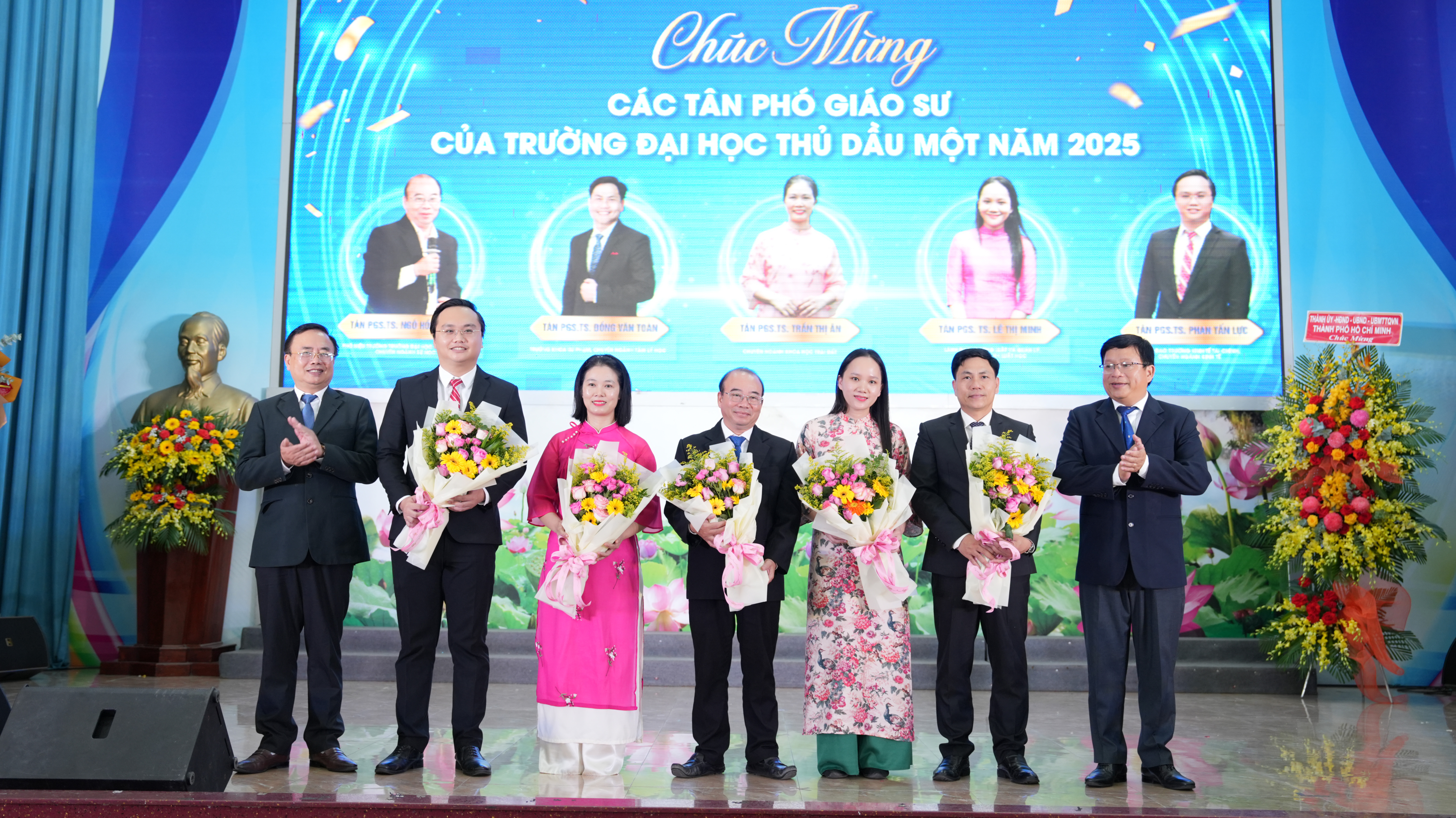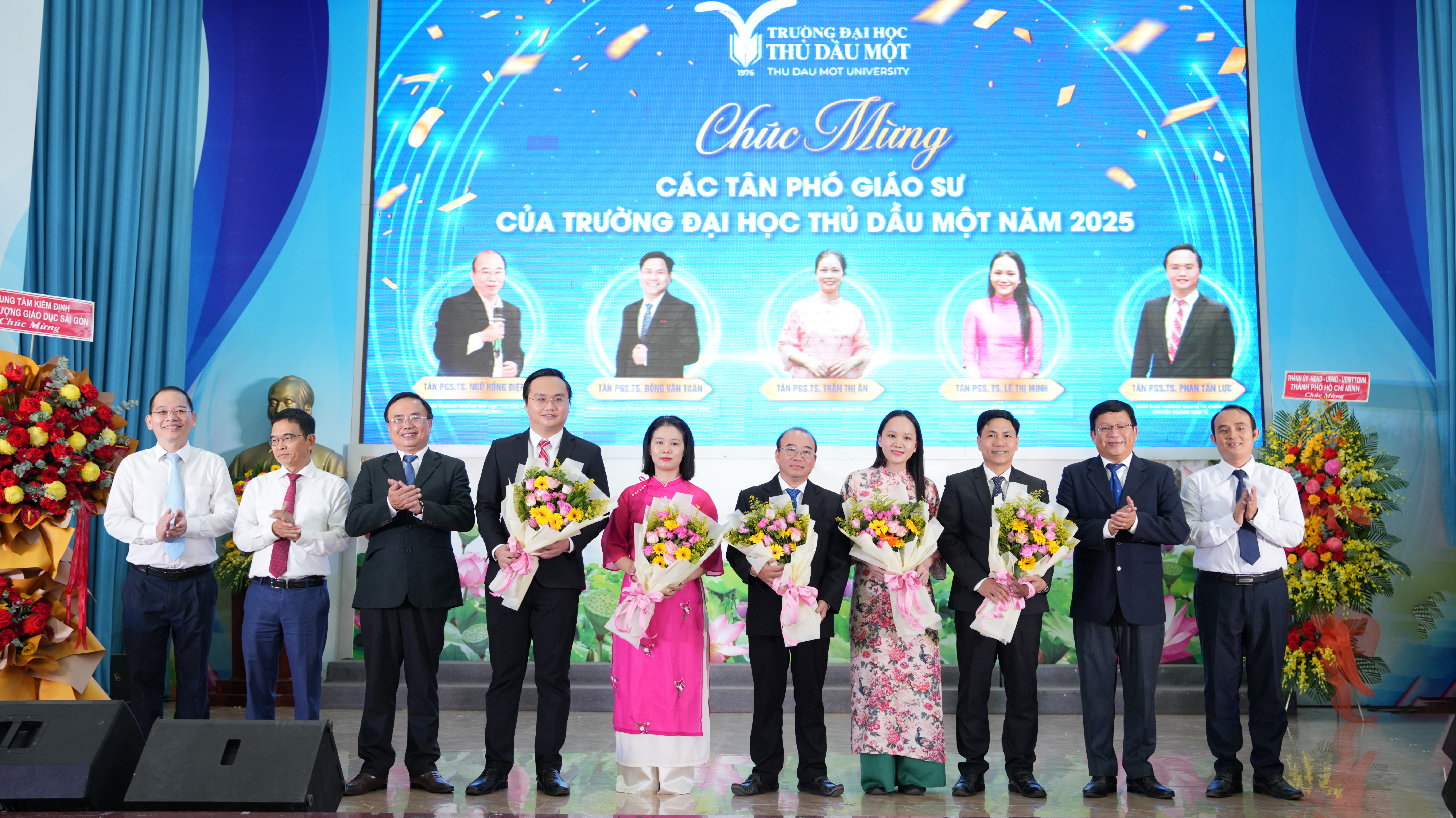 Nhân dịp này, Trường Đại học Thủ Dầu Một vinh dự đón nhận tin vui khi có thêm 05 Tân Phó Giáo sư được Hội đồng Giáo sư Nhà nước công nhận, bao gồm: PGS.TS. Ngô Hồng Điệp, Phó Hiệu trưởng Trường Đại học Thủ Dầu Một, chuyên ngành Sử học; PGS.TS. Đồng Văn Toàn, Trường Khoa Sư Phạm, chuyên ngành Tâm lý; PGS.TS. Phan Tấn Lực, Lãnh đạo Trường Kinh tế Tài chính, chuyên ngành Kinh tế; PGS.TS. Trần Thị Ân, Trường Luật và quản lý, chuyên ngành Khoa học Trái đất; PGS.TS. Lê Thị Minh, Trường Luật và quản lý, chuyên ngành Luật học.