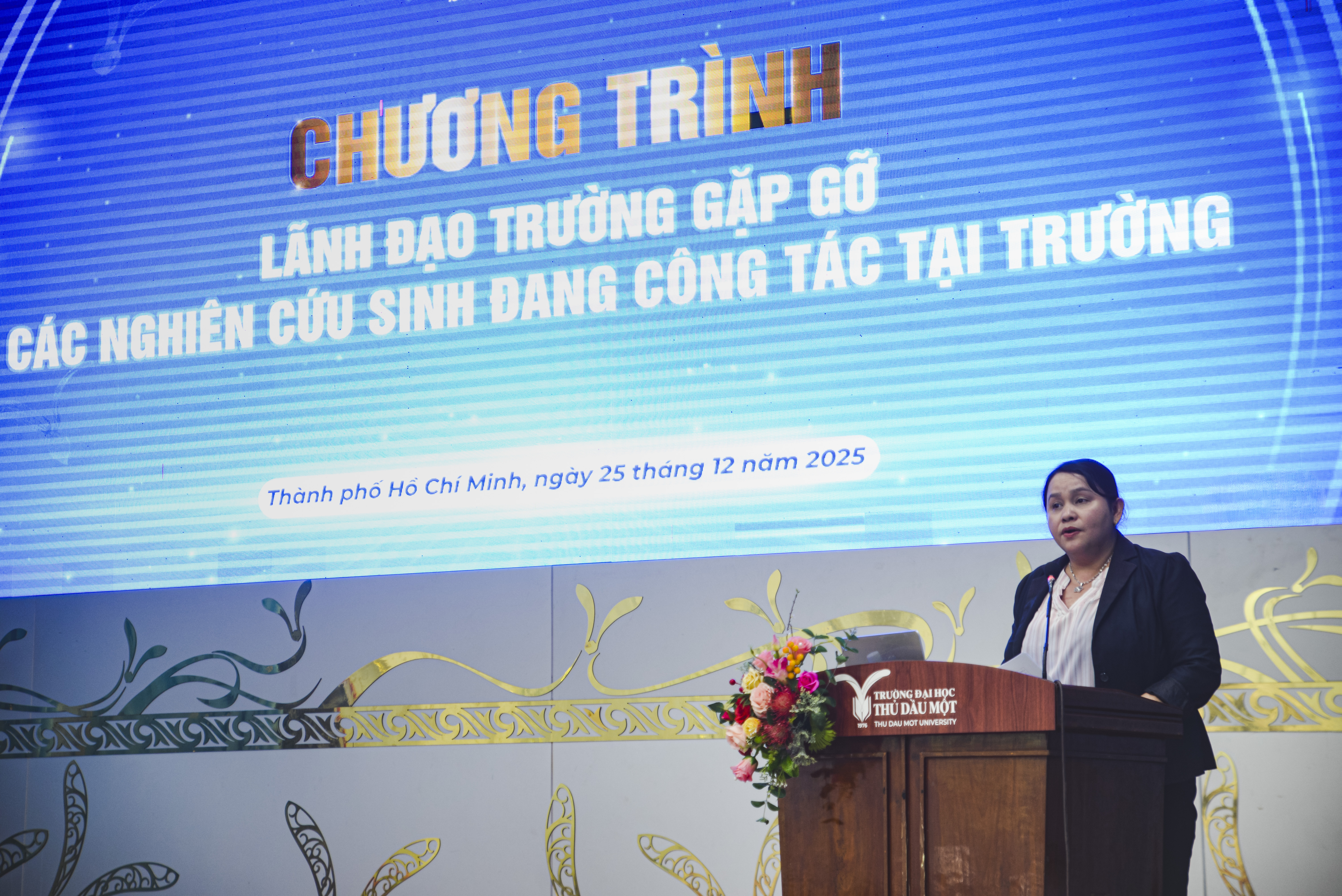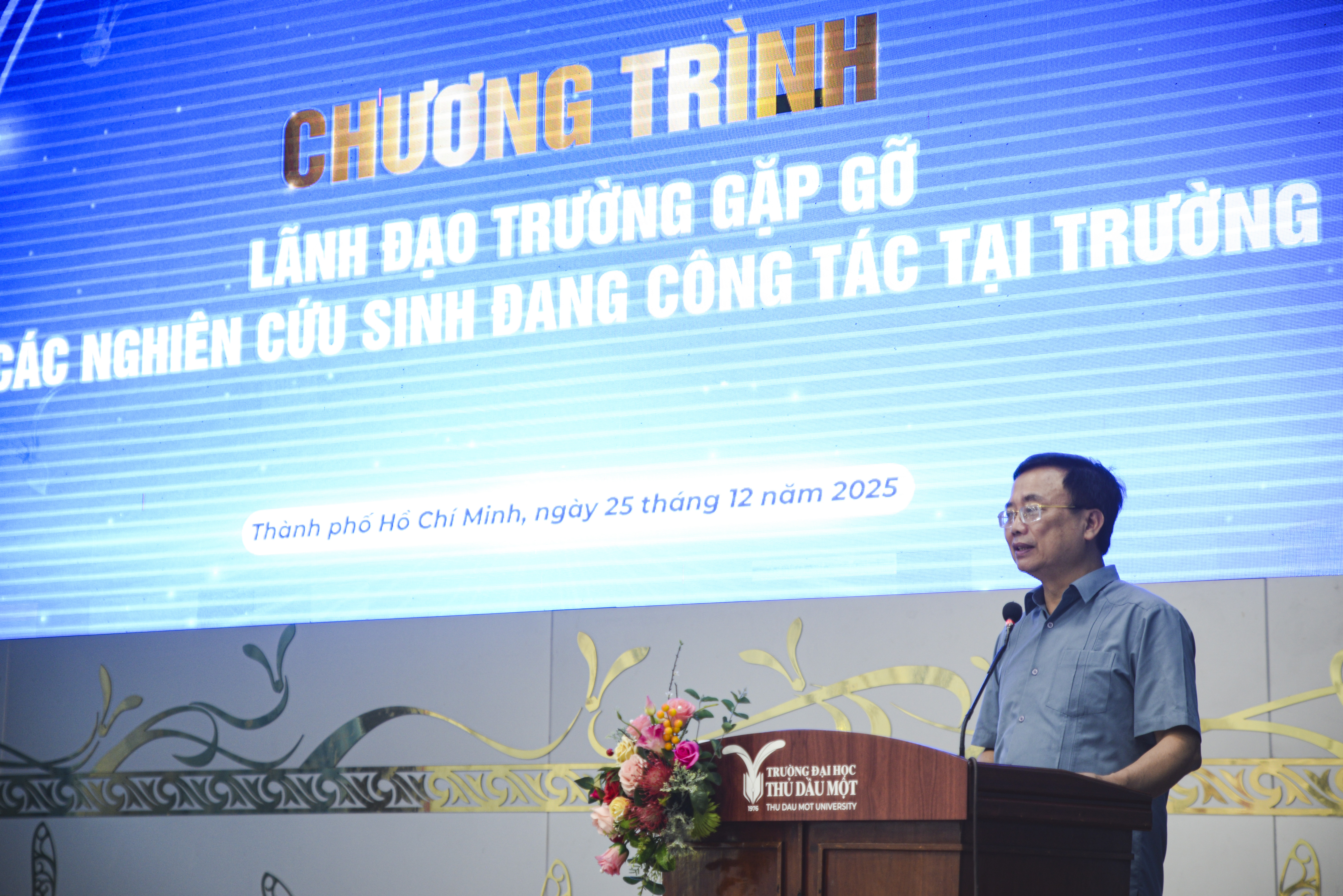 Ngày 25/12/2025, Trường Đại học Thủ Dầu Một đã tổ chức buổi gặp gỡ giảng viên, viên chức đang học nghiên cứu sinh nhà trường nhằm lắng nghe tâm tư, nguyện vọng cũng như chia sẻ những khó khăn, thuận lợi của cán bộ, giảng viên, viên chức trong quá trình học tập, nghiên cứu và công tác.
