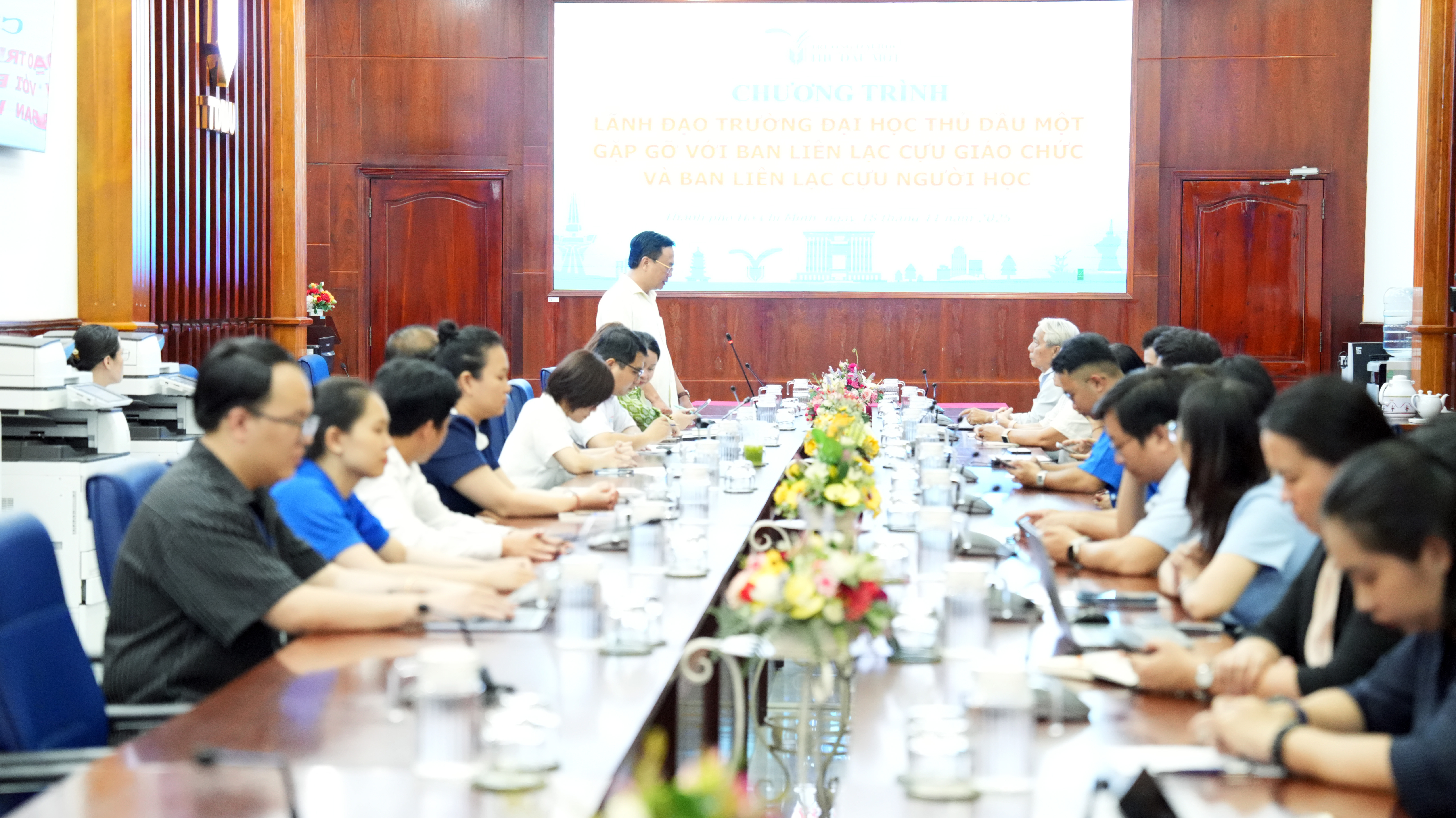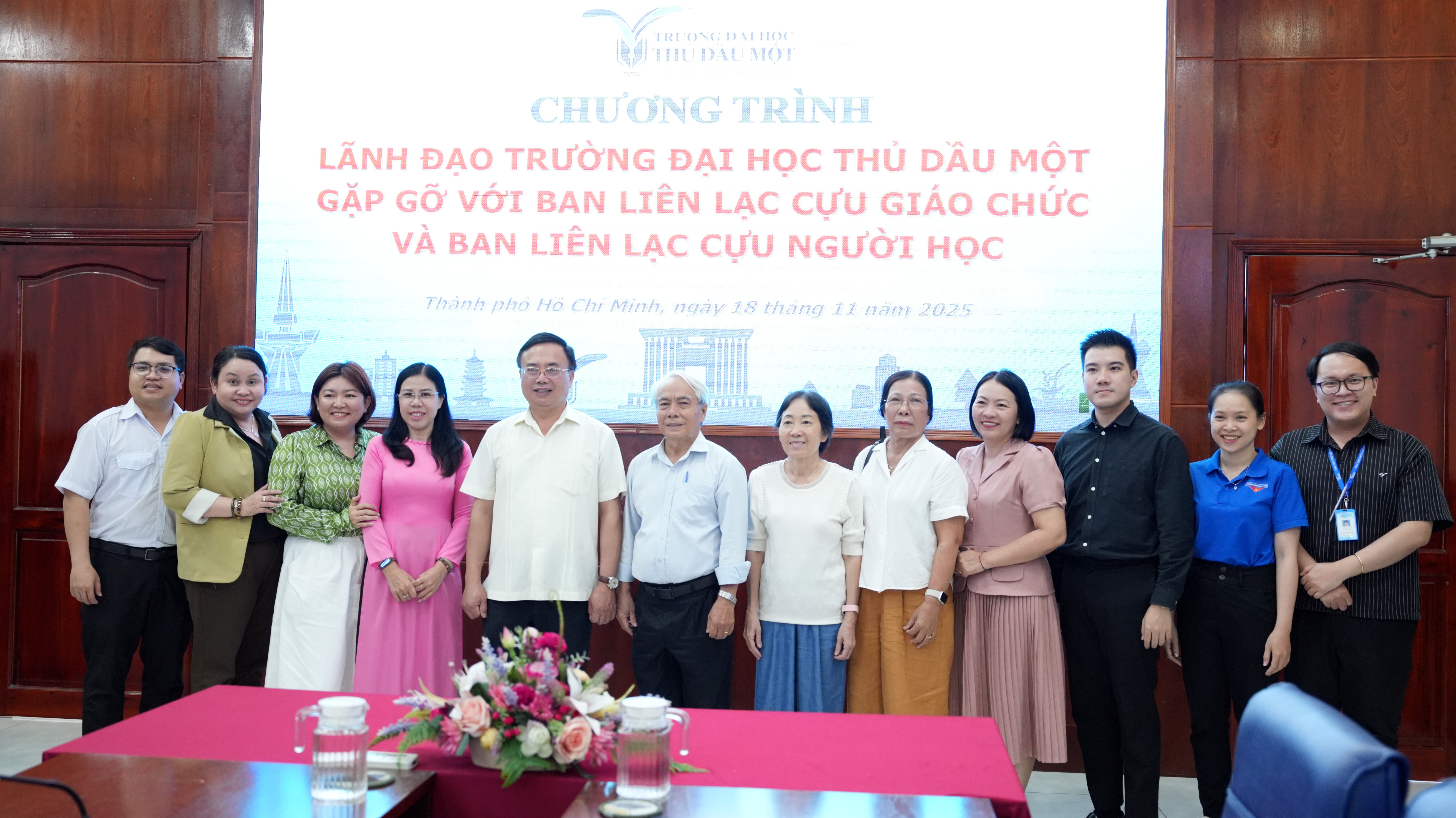 Sáng 18/11/2025, Trường Đại học Thủ Dầu Một tổ chức chương trình gặp gỡ Ban liên lạc cựu giáo chức và Ban liên lạc cựu người học, nhằm tăng cường kết nối, tri ân các thế hệ thầy cô và cựu sinh viên