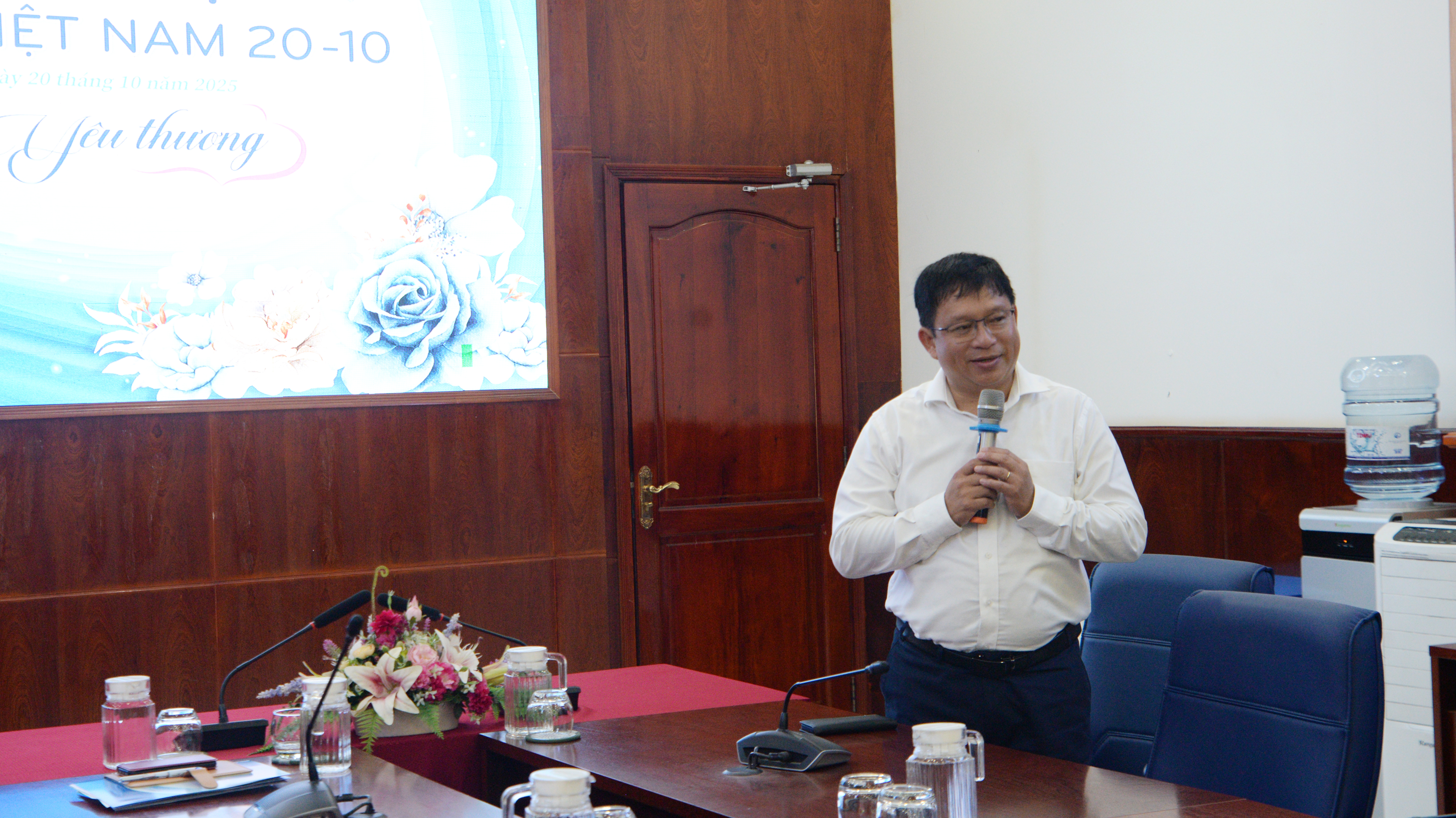 TS. Đoàn Ngọc Xuân – Hiệu trưởng phát biểu gửi lời chúc mừng nồng nhiệt, đồng thời ghi nhận và biểu dương những nỗ lực, cống hiến của đội ngũ nữ trí thức trong sự nghiệp phát triển của trường