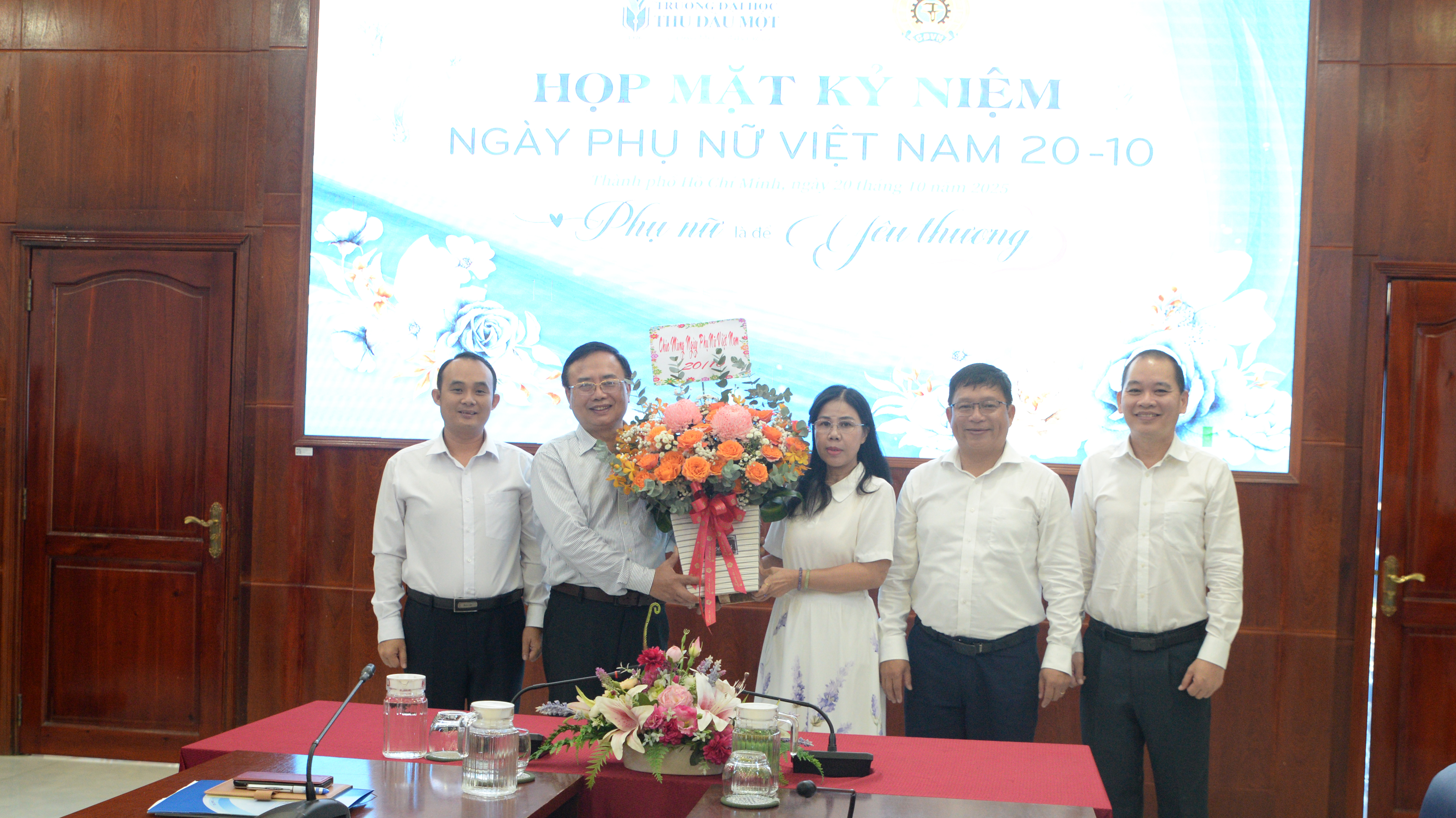Nhân kỷ niệm 95 năm Ngày Phụ nữ Việt Nam (20/10/1930 – 20/10/2025), lãnh đạo Trường Đại học Thủ Dầu Một đã tổ chức buổi gặp mặt thân mật, tặng hoa và gửi lời chúc mừng tới đại diện nữ cán bộ, quản lý, giảng viên, viên chức đang công tác, giảng dạy tại trường