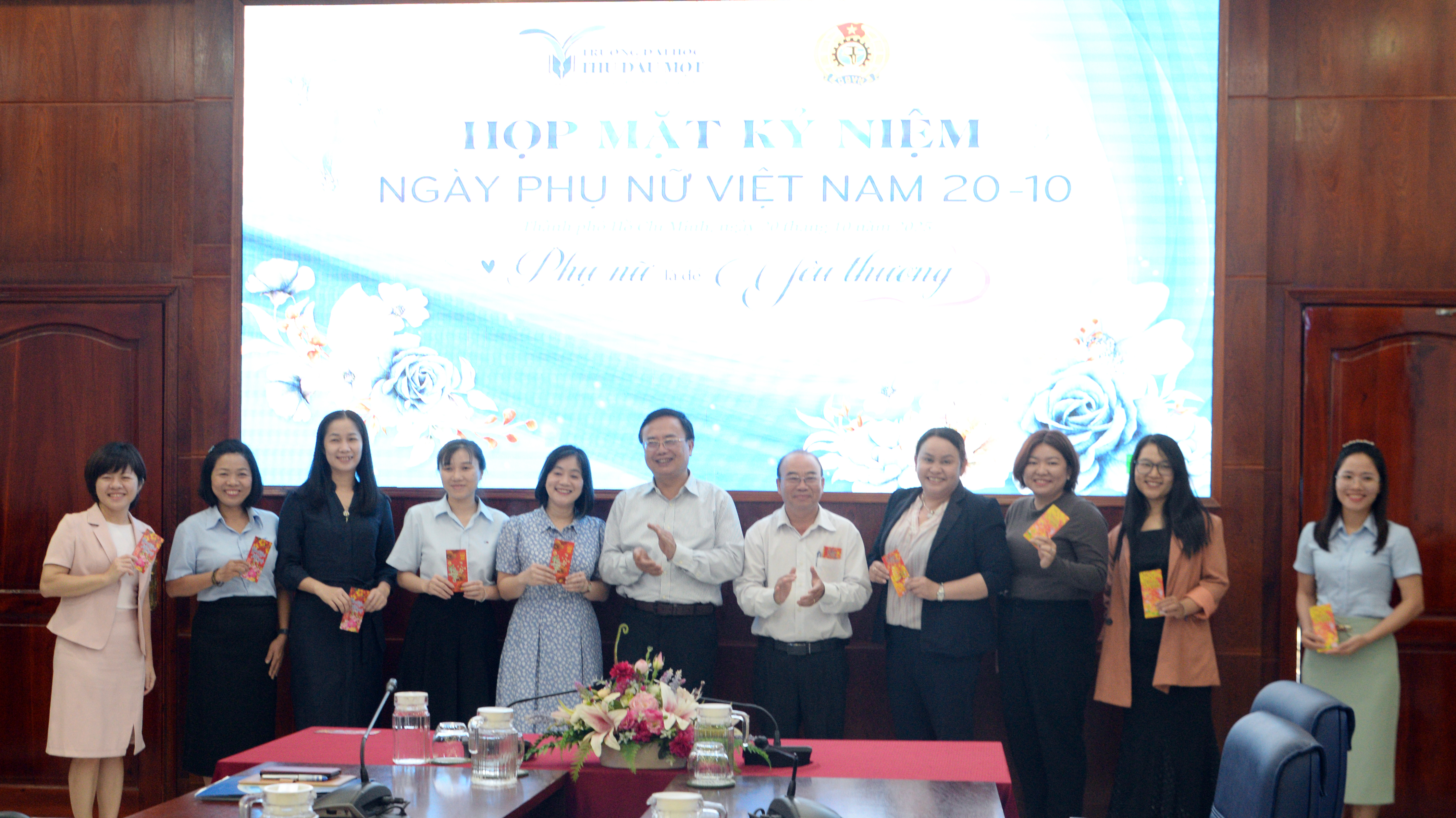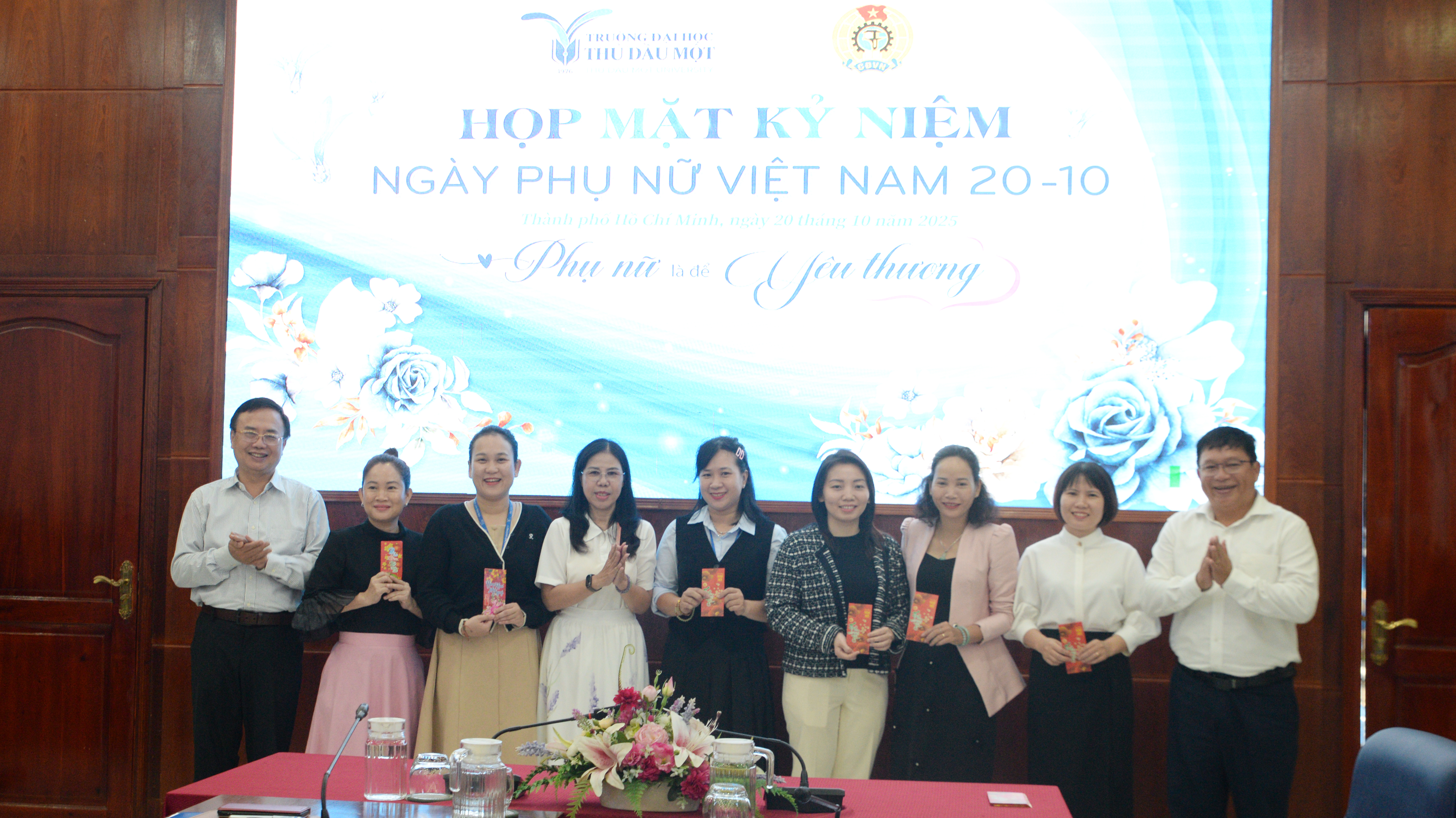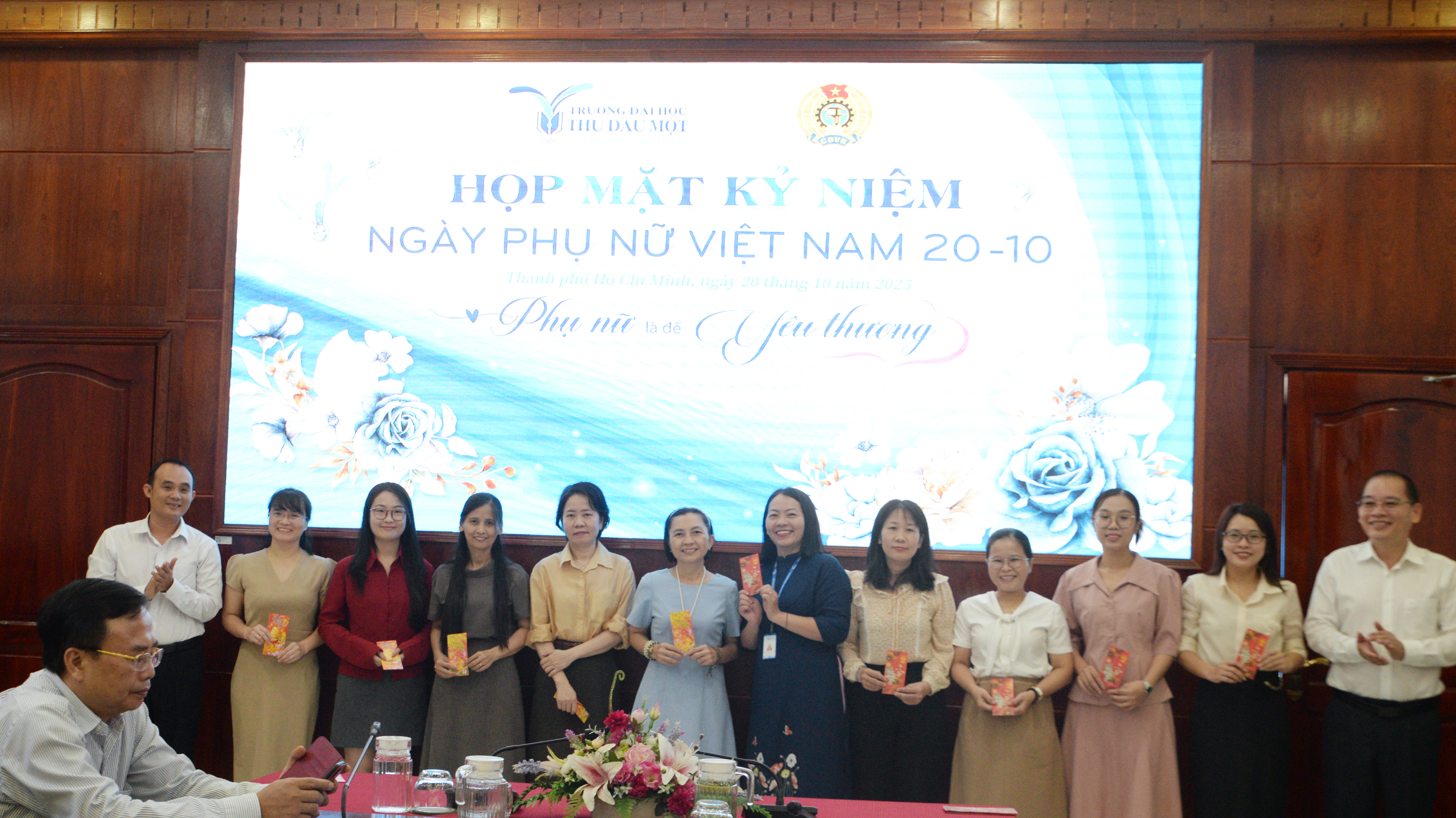 Nhân kỷ niệm 95 năm Ngày Phụ nữ Việt Nam (20/10/1930 – 20/10/2025), lãnh đạo Trường Đại học Thủ Dầu Một đã tổ chức buổi gặp mặt thân mật, tặng hoa và gửi lời chúc mừng tới đại diện nữ cán bộ, quản lý, giảng viên, viên chức đang công tác, giảng dạy tại trường.