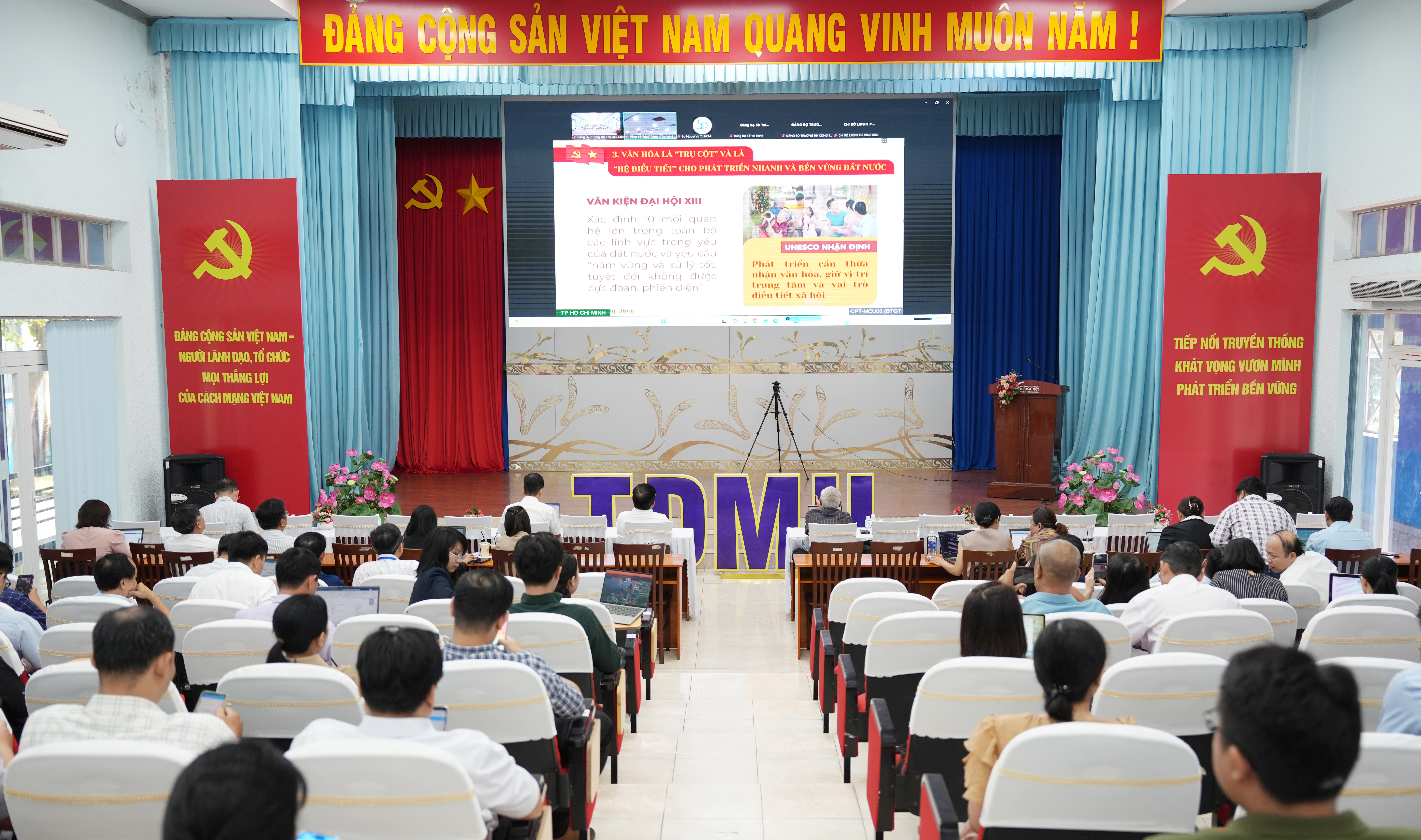 Tại điểm cầu Trường Đại học Thủ Dầu Một, hội nghị có sự tham dự của PGS.TS Lê Tuấn Anh – Bí thư Đảng ủy; TS. Đoàn Ngọc Xuân – Hiệu trưởng; ThS. Trần Văn Nam – Phó Bí thư Đảng ủy; PGS.TS Ngô Hồng Điệp – Phó Hiệu trưởng; ThS. Vương Thế Hùng – Phó Hiệu trưởng; TS. Bùi Thanh Khiết – Phó Hiệu trưởng, cùng các đồng chí trong Ban Chấp hành Đảng bộ Trường, cấp ủy các chi bộ, đảng bộ bộ phận, đảng viên và lãnh đạo các đơn vị thuộc, trực thuộc nhà trường.