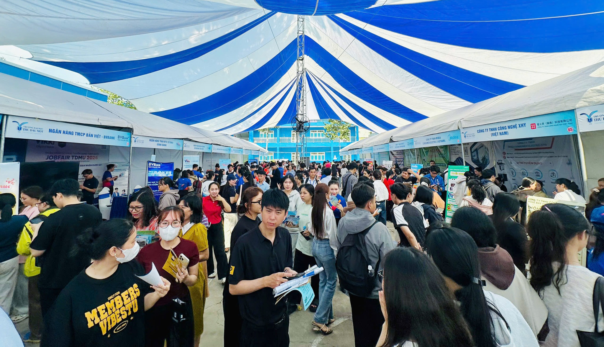 Sáng 18/4/2026, Trường Đại học Thủ Dầu Một tổ chức Ngày hội việc làm lần thứ XIII – TDMU Job Fair 2026, thu hút gần 4.000 sinh viên và người lao động tham gia. Sự kiện tiếp tục khẳng định vai trò là hoạt động kết nối việc làm quy mô lớn, duy trì thường niên của nhà trường, tạo không gian gặp gỡ trực tiếp giữa người học và doanh nghiệp trong bối cảnh thị trường lao động ngày càng đòi hỏi tính thực tiễn cao.