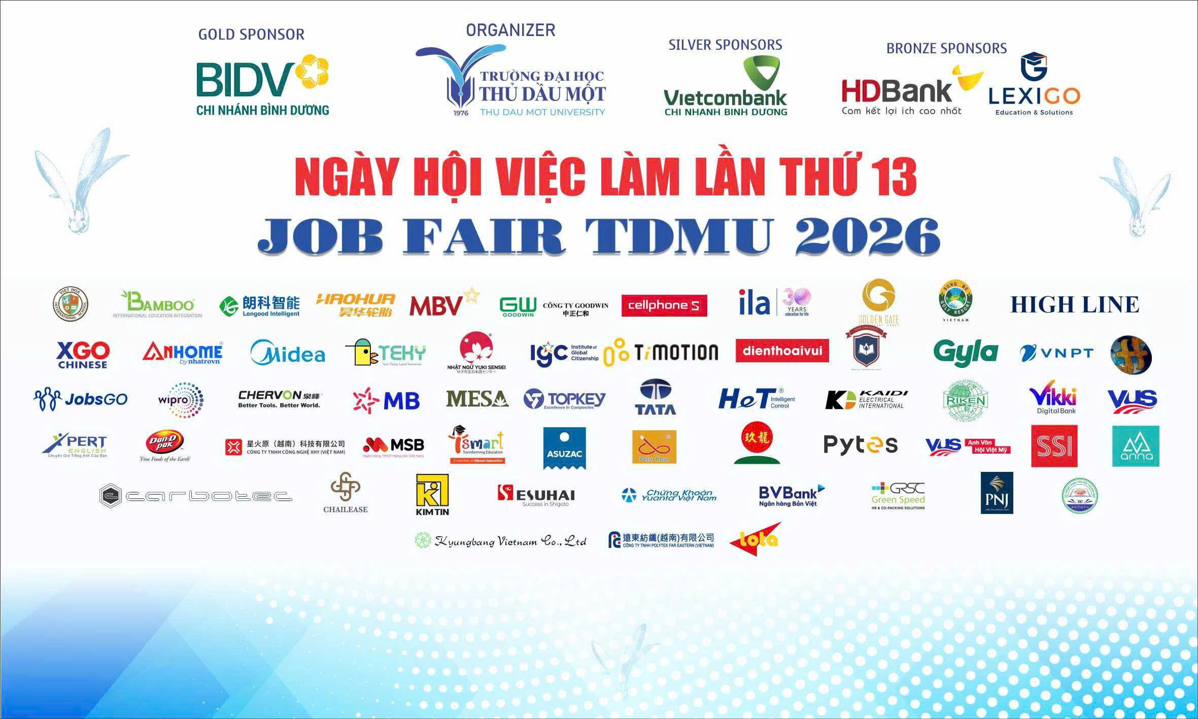 Ngày hội việc làm TDMU 2026 sẽ diễn ra trực tiếp tại khuôn viên Trường Đại học Thủ Dầu Một vào ngày 18/4/2026, hứa hẹn mang đến không gian kết nối năng động, thiết thực, đồng thời mở ra nhiều cơ hội việc làm cho sinh viên toàn trường.