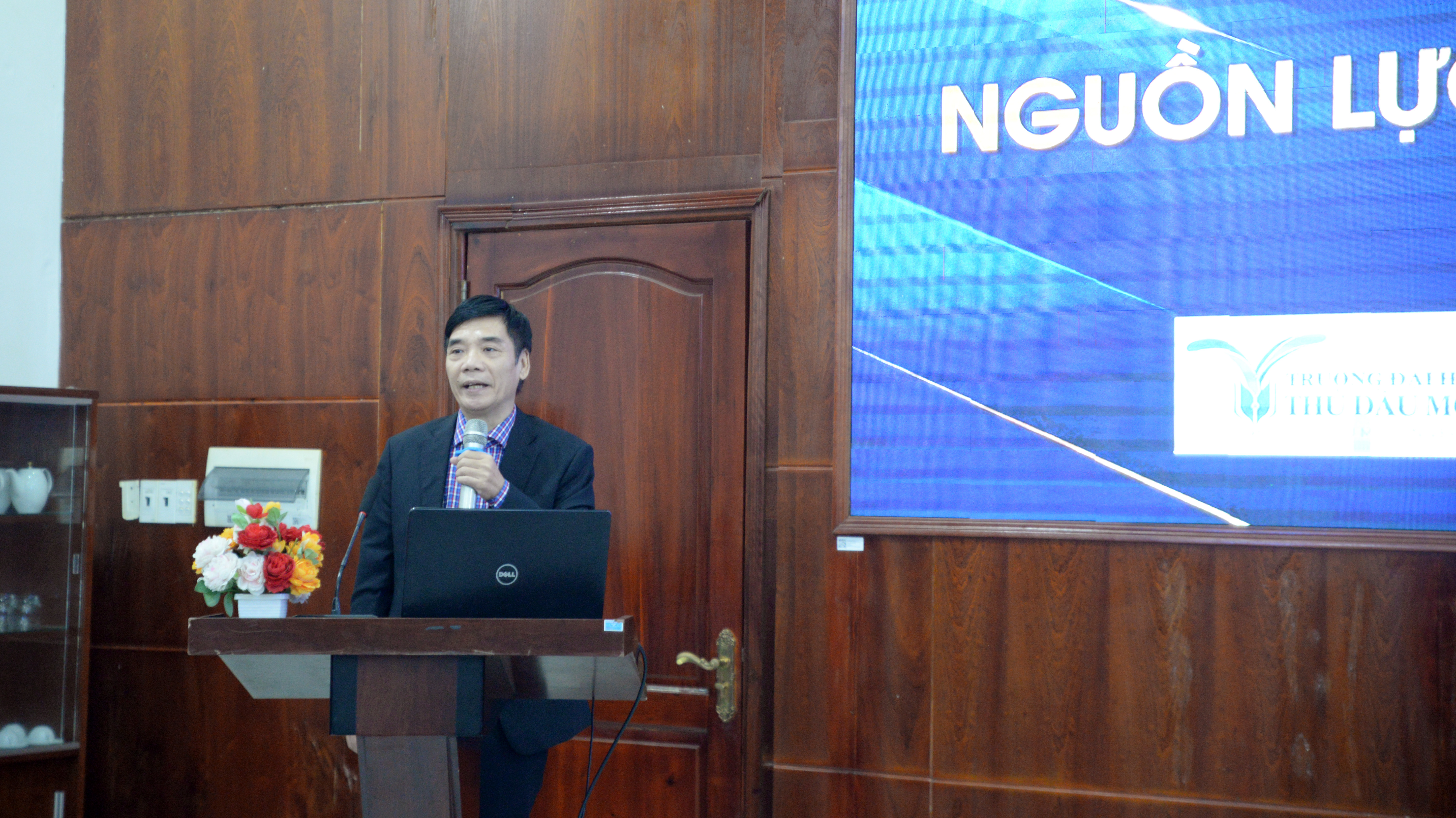 Phát biểu ý kiến tại tọa đàm, TS. Đoàn Duy Khương – Nguyên Phó Chủ tịch VCCI nhấn mạnh, để hiện thực hóa chiến lược phát triển dài hạn và trở thành đại học ứng dụng – đổi mới sáng tạo, Trường Đại học Thủ Dầu Một cần tập trung quản trị và phát triển đồng bộ các nguồn lực cốt lõi. Trước hết, nhà trường cần chú trọng nguồn nhân lực, bao gồm giảng viên, nhà nghiên cứu, đội ngũ quản lý, chuyên gia tư vấn và sinh viên năng động, sáng tạo. Việc xây dựng cơ chế thu hút, đãi ngộ và phát triển năng lực đội ngũ, đồng thời khuyến khích tinh thần đổi mới, hợp tác liên ngành và sáng tạo khởi nghiệp sẽ là nền tảng thúc đẩy nghiên cứu ứng dụng, đổi mới sáng tạo và nâng cao năng lực cạnh tranh. Về tài chính và cơ sở vật chất, nhà trường cần cân bằng giữa ngân sách Nhà nước, các nguồn xã hội hóa và hợp tác doanh nghiệp, đồng thời phát triển cơ sở vật chất thông minh, xanh, bền vững, hỗ trợ tối đa cho hoạt động đào tạo, nghiên cứu, khởi nghiệp và các dự án đổi mới sáng tạo. Bên cạnh đó, việc xây dựng mối quan hệ xã hội với doanh nghiệp, cộng đồng và các đối tác quốc tế sẽ mở rộng cơ hội học tập, nghiên cứu, triển khai sáng kiến đổi mới, khởi nghiệp và đồng thời nâng cao uy tín, vị thế của Nhà trường trên phạm vi quốc gia và quốc tế. Theo TS. Đoàn Duy Khương, việc phát triển đồng bộ và hiệu quả các nguồn lực này chính là nền tảng vững chắc để Trường Đại học Thủ Dầu Một thúc đẩy chuyển đổi số, khởi nghiệp, đổi mới sáng tạo và hội nhập quốc tế, góp phần nâng cao năng lực cạnh tranh và uy tín trong giáo dục đại học.