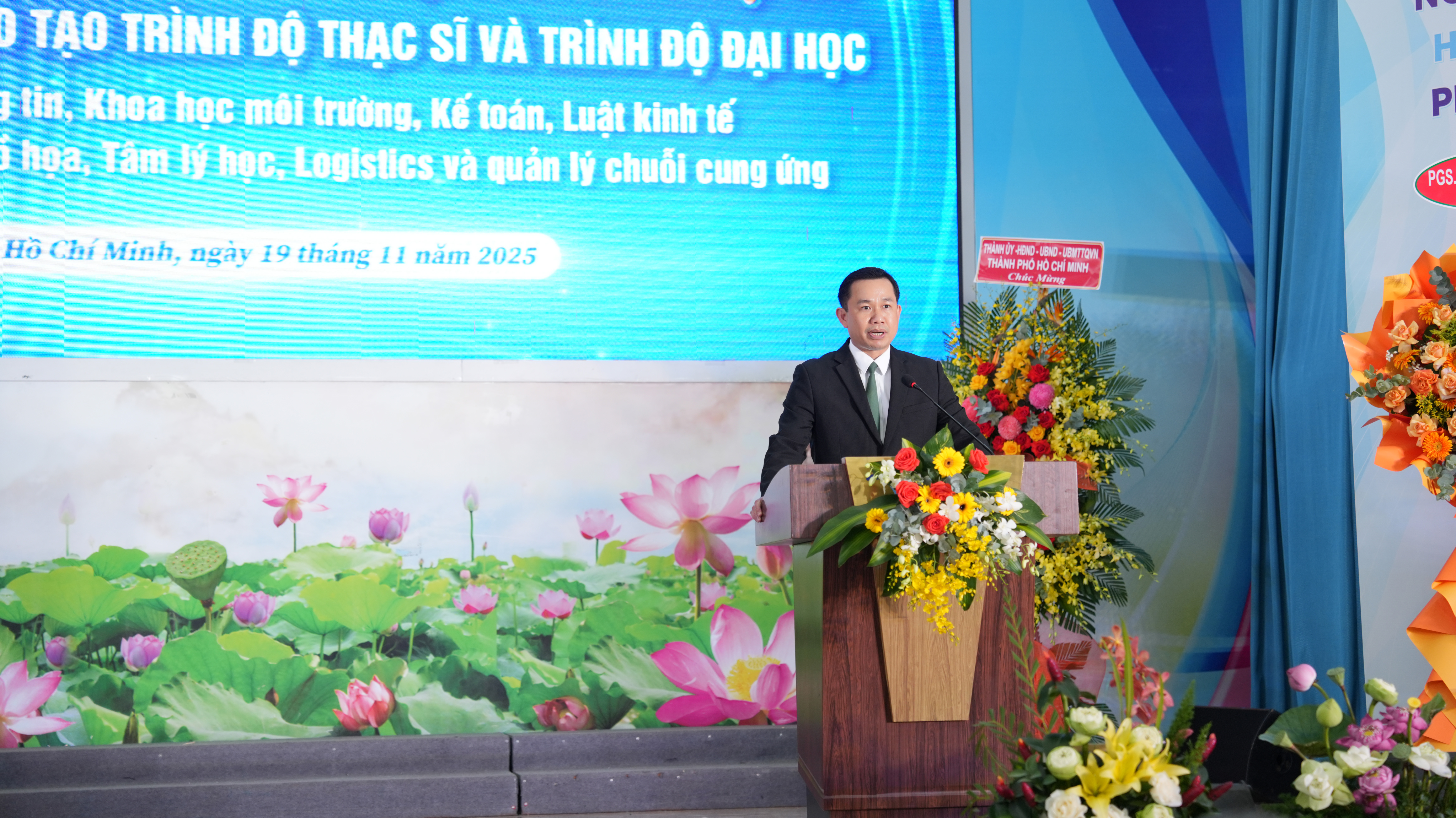 Tại buổi lễ, TS. Lê Hoàng Vũ – Phó Giám đốc Trung tâm Kiểm định chất lượng giáo dục Sài Gòn công bố các quyết định công nhận đạt tiêu chuẩn chất lượng chương trình đào tạo. Các chương trình được công nhận bao gồm: 04 chương trình trình độ thạc sĩ: Hệ thống thông tin, Khoa học môi trường, Kế toán, Luật kinh tế; 04 chương trình trình độ đại học: Toán học, Thiết kế đồ họa, Tâm lý học, Logistics và Quản lý chuỗi cung ứng.