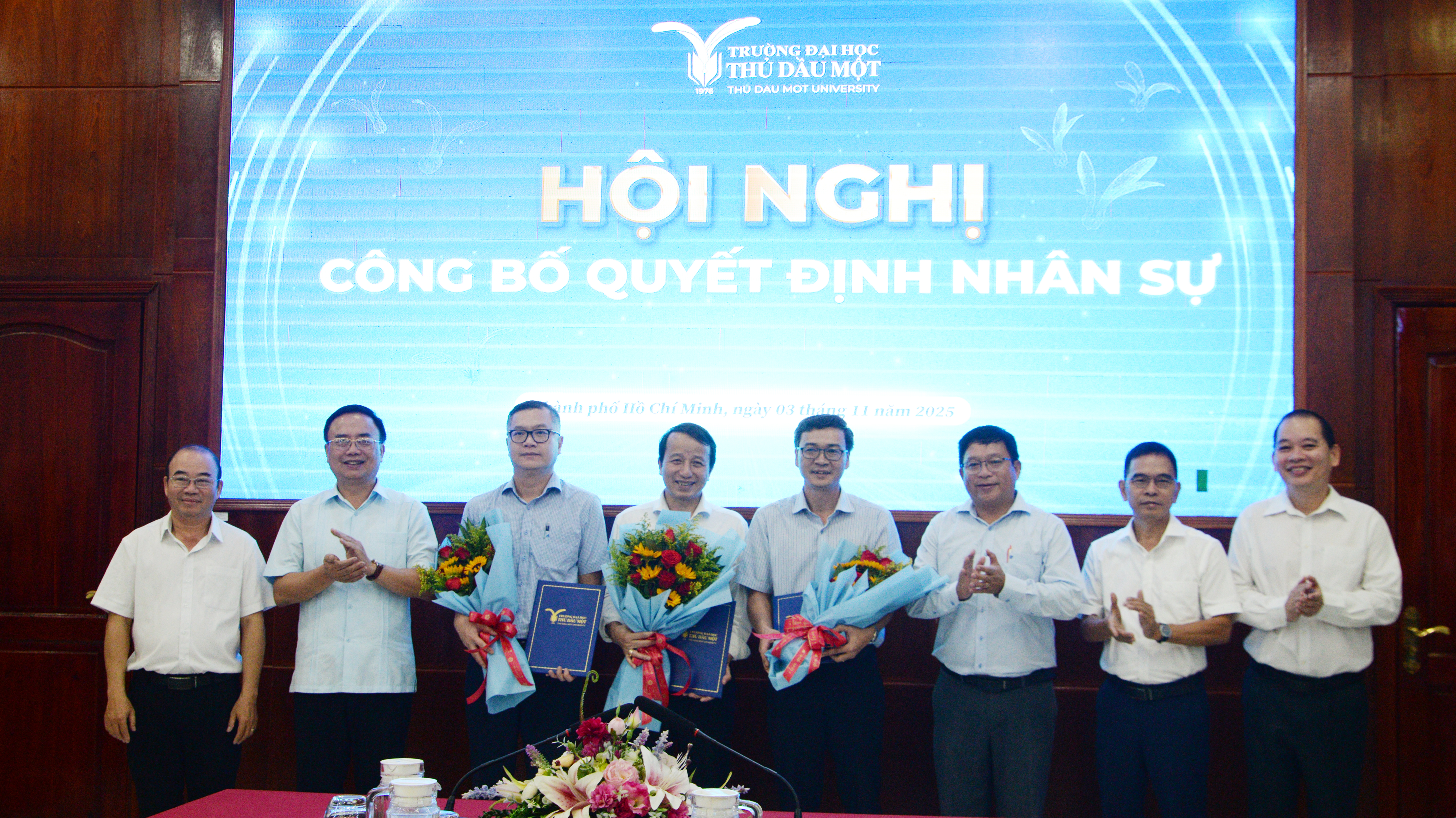 Ngày 03/11/2025, Trường Đại học Thủ Dầu Một đã tổ chức Hội nghị công bố và trao quyết định nhân sự lãnh đạo cho các đơn vị thuộc, trực thuộc trường.