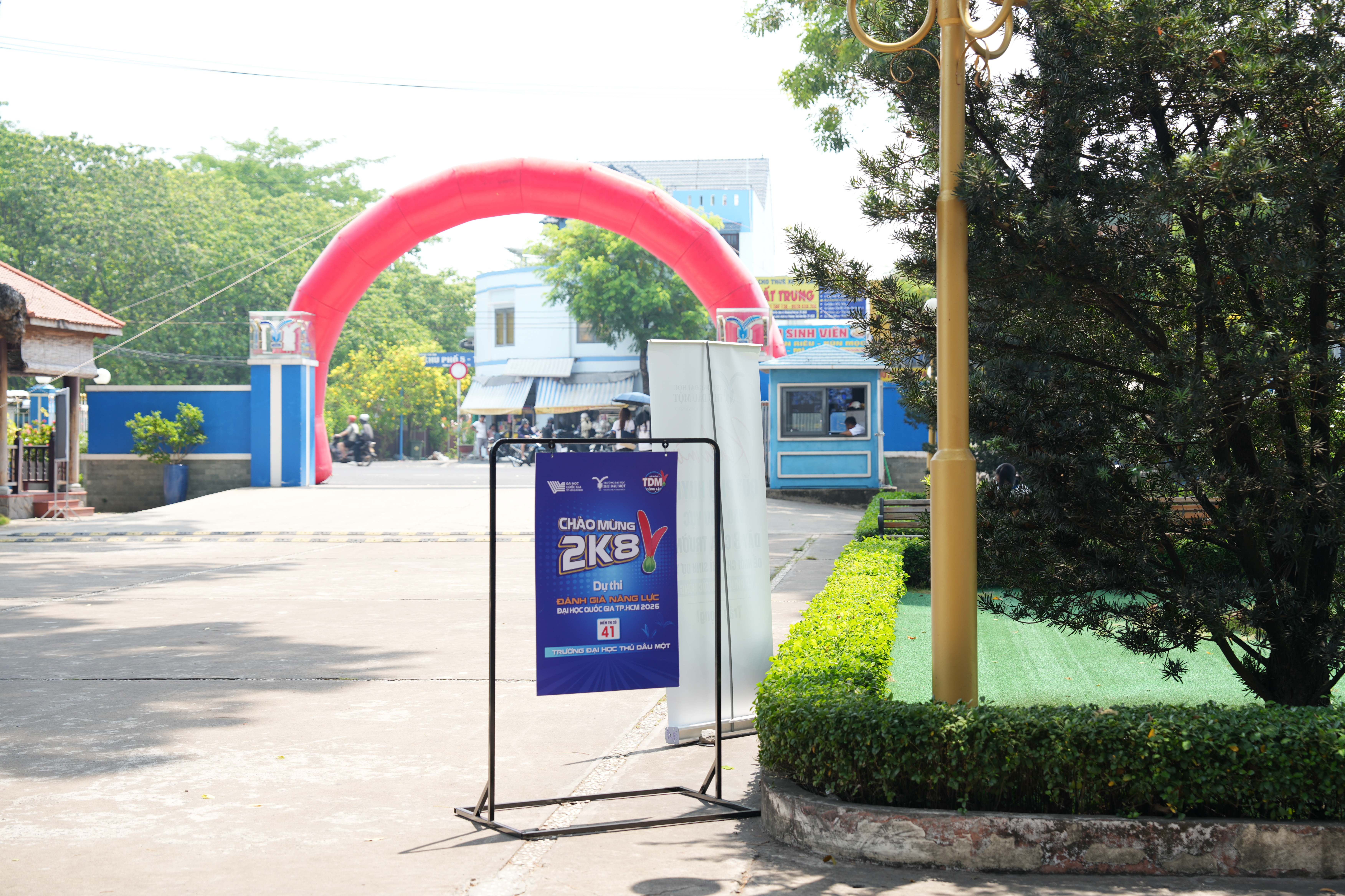 Một điểm nổi bật trong công tác tổ chức năm nay là sự chủ động trong hỗ trợ thí sinh và phụ huynh. Ngay từ chiều ngày 04/4/2026, nhà trường đã triển khai các hoạt động đón tiếp, hướng dẫn sơ đồ phòng thi, cung cấp thông tin cần thiết. Đội hình sinh viên tình nguyện “Tiếp sức mùa thi” được bố trí tại nhiều vị trí trong khuôn viên trường, sẵn sàng hỗ trợ thí sinh tra cứu thông tin, hướng dẫn di chuyển, tiếp nước và giải đáp các thắc mắc. Với sự chuẩn bị toàn diện, đồng bộ và tinh thần trách nhiệm cao, Trường Đại học Thủ Dầu Một thể hiện quyết tâm cùng Đại học Quốc gia TP.HCM tổ chức thành công Kỳ thi Đánh giá năng lực năm 2026, góp phần mang đến một kỳ thi an toàn, nghiêm túc và hiệu quả cho thí sinh.