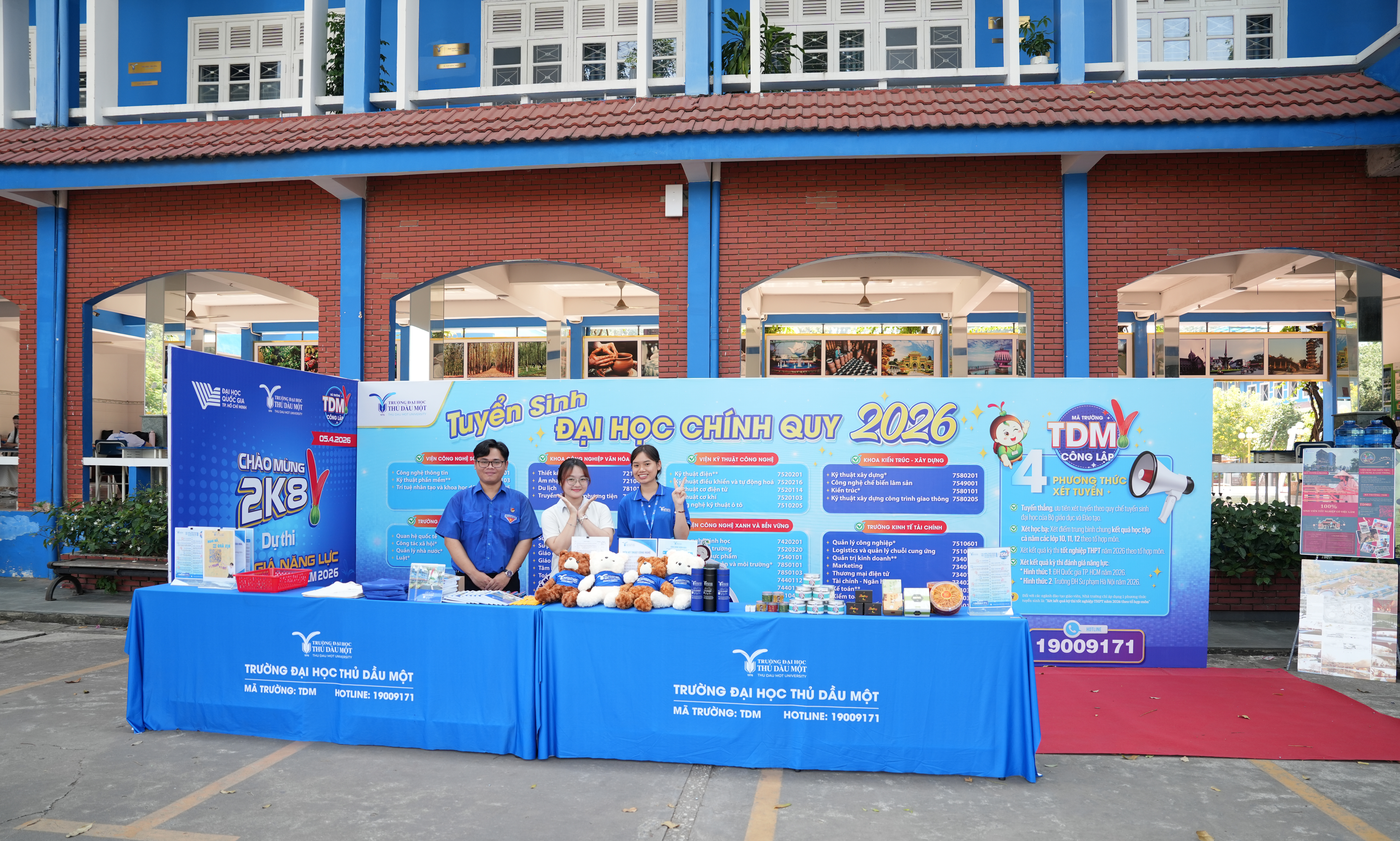 Song song với việc tổ chức thi, Trường Đại học Thủ Dầu Một cũng đẩy mạnh hoạt động tư vấn tuyển sinh trực tiếp tại khu vực dãy B. Tại đây, thí sinh và phụ huynh có thể tìm hiểu đầy đủ thông tin về các ngành đào tạo, chương trình học, phương thức xét tuyển năm 2026, cũng như các chính sách học phí, học bổng và cơ hội nghề nghiệp sau tốt nghiệp. Hoạt động tư vấn được thực hiện bởi đội ngũ giảng viên giàu kinh nghiệm, kết hợp cùng sinh viên đang theo học tại trường, mang đến góc nhìn thực tiễn và gần gũi. Việc kết hợp giữa tổ chức thi và tư vấn tuyển sinh không chỉ giúp thí sinh thuận lợi trong việc tham dự kỳ thi, mà còn tạo điều kiện để các em định hình rõ hơn lựa chọn ngành học trong tương lai.