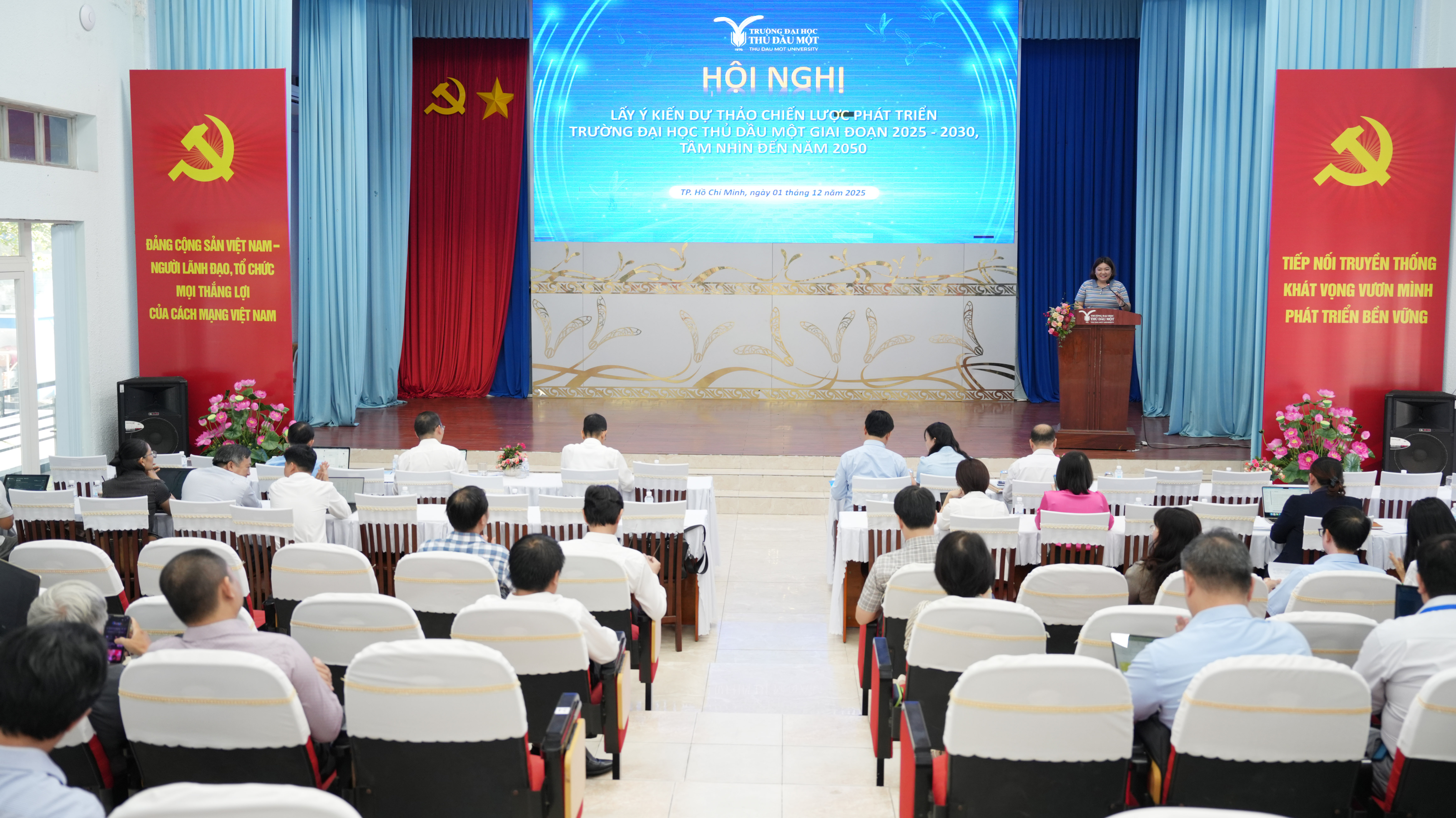 Ngày 01/12/2025, Trường Đại học Thủ Dầu Một tổ chức hội nghị lấy ý kiến dự thảo Chiến lược phát triển Trường Đại học Thủ Dầu Một đến năm 2030, tầm nhìn đến năm 2050