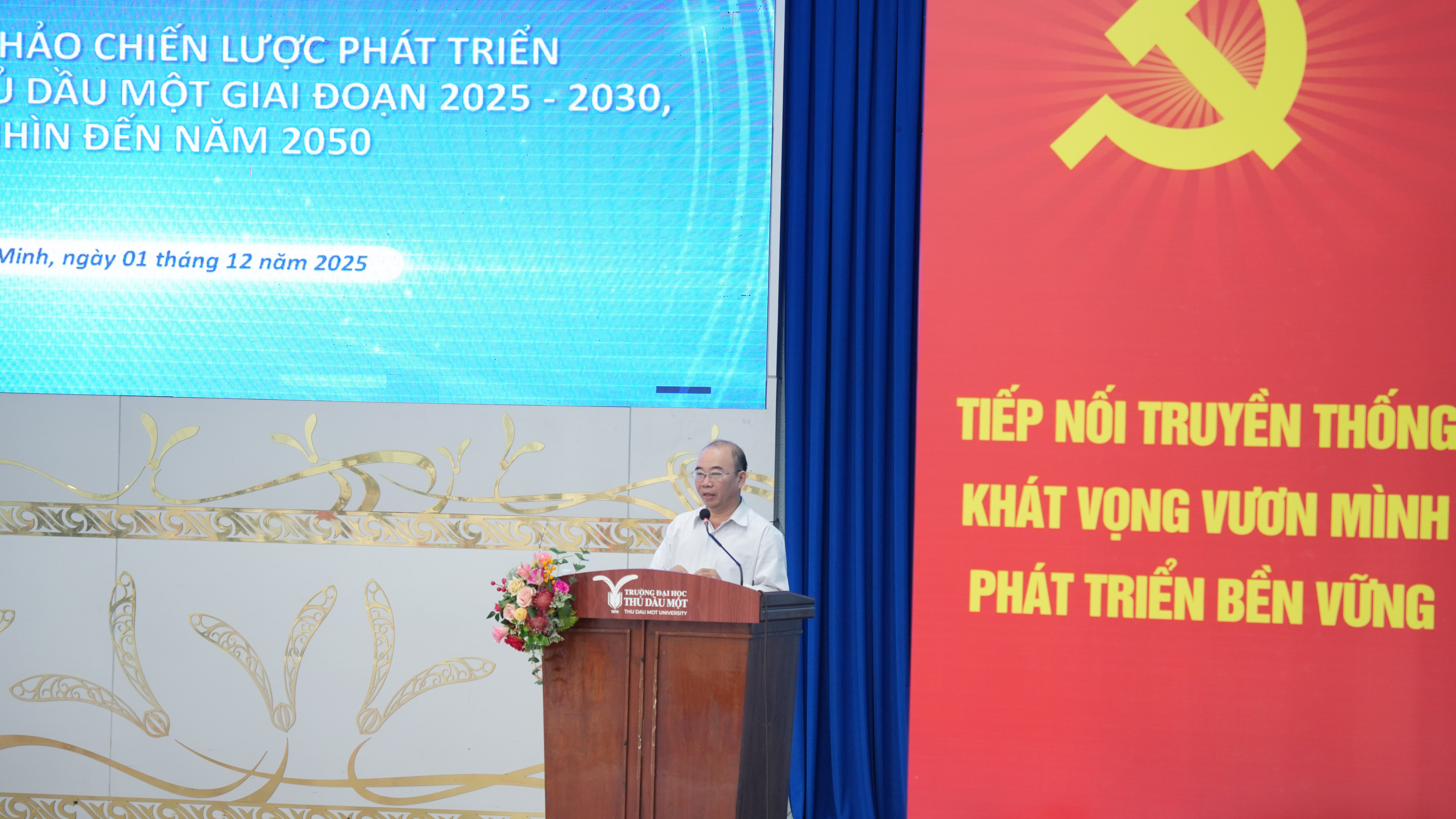 Ngày 01/12/2025, Trường Đại học Thủ Dầu Một tổ chức hội nghị lấy ý kiến dự thảo Chiến lược phát triển Trường Đại học Thủ Dầu Một đến năm 2030, tầm nhìn đến năm 2050. Hội nghị là bước làm việc quan trọng nhằm hoàn thiện định hướng phát triển dài hạn của trường trong giai đoạn mới.