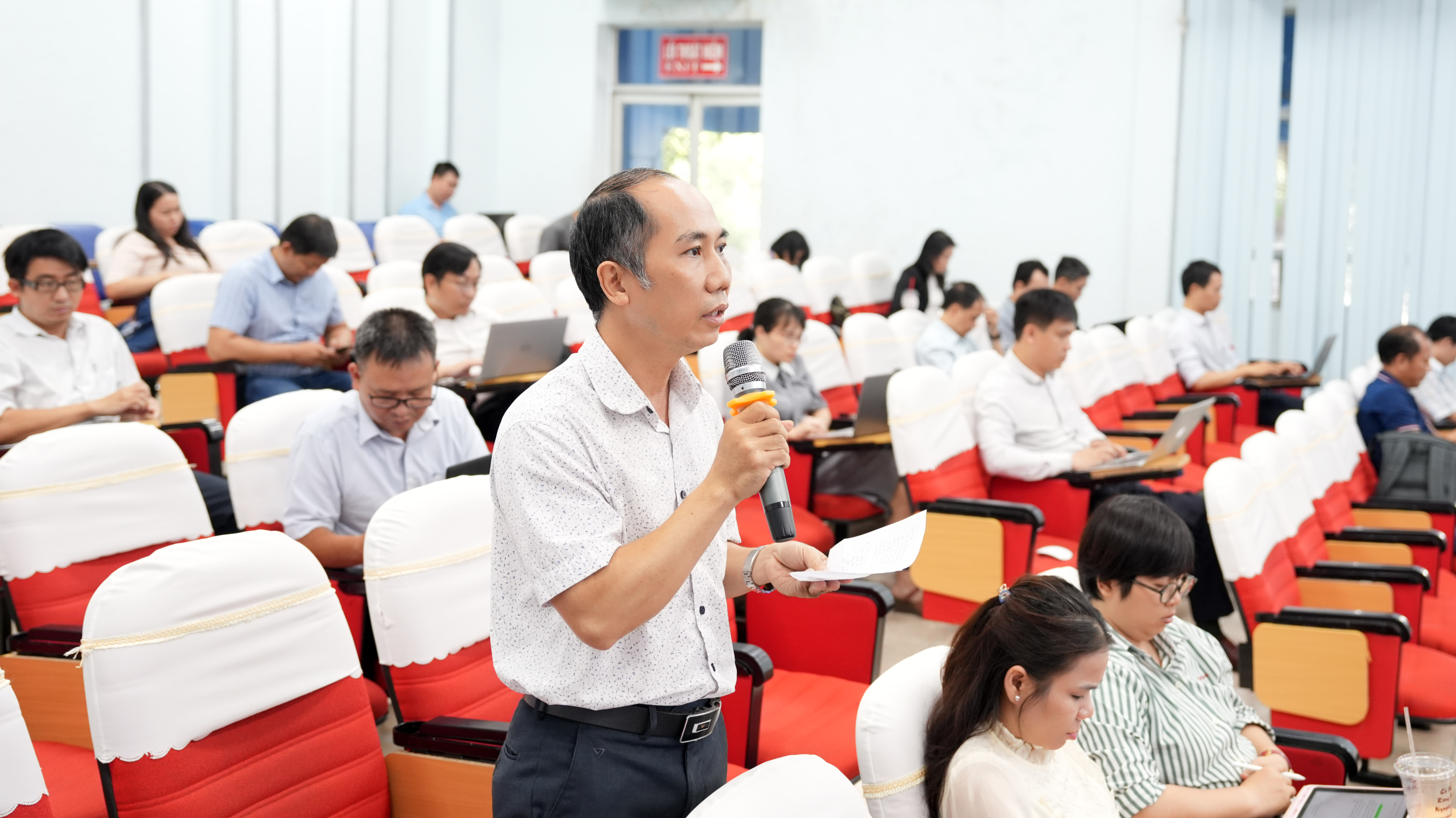 TS. Đoàn Ngọc Xuân – Hiệu trưởng chủ trì phiên thảo luận, lắng nghe các ý kiến đóng góp từ đội ngũ chuyên gia, cán bộ và giảng viên nhằm hoàn thiện dự thảo Chiến lược