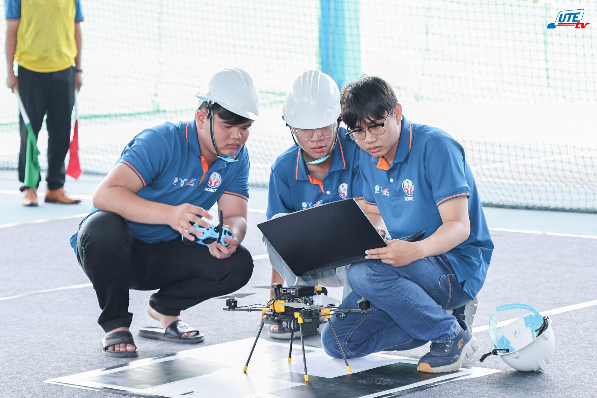 Vòng Chung kết năm nay quy tụ 08 đội thi xuất sắc đến từ Trường Đại học Công nghệ Kỹ thuật TP.HCM, Trường Đại học Tôn Đức Thắng và Trường Đại học Thủ Dầu Một. Tại vòng thi quyết định, các đội đã phát huy tối đa kiến thức chuyên môn, kỹ năng lập trình, tư duy chiến thuật và khả năng phối hợp nhóm để điều khiển UAV vượt qua những thử thách kỹ thuật phức tạp, đòi hỏi độ chính xác cao và tính sáng tạo. Qua đó, cuộc thi không chỉ đánh giá năng lực kỹ thuật mà còn rèn luyện bản lĩnh, khả năng thích ứng và giải quyết vấn đề của sinh viên trong môi trường công nghệ thực tiễn.