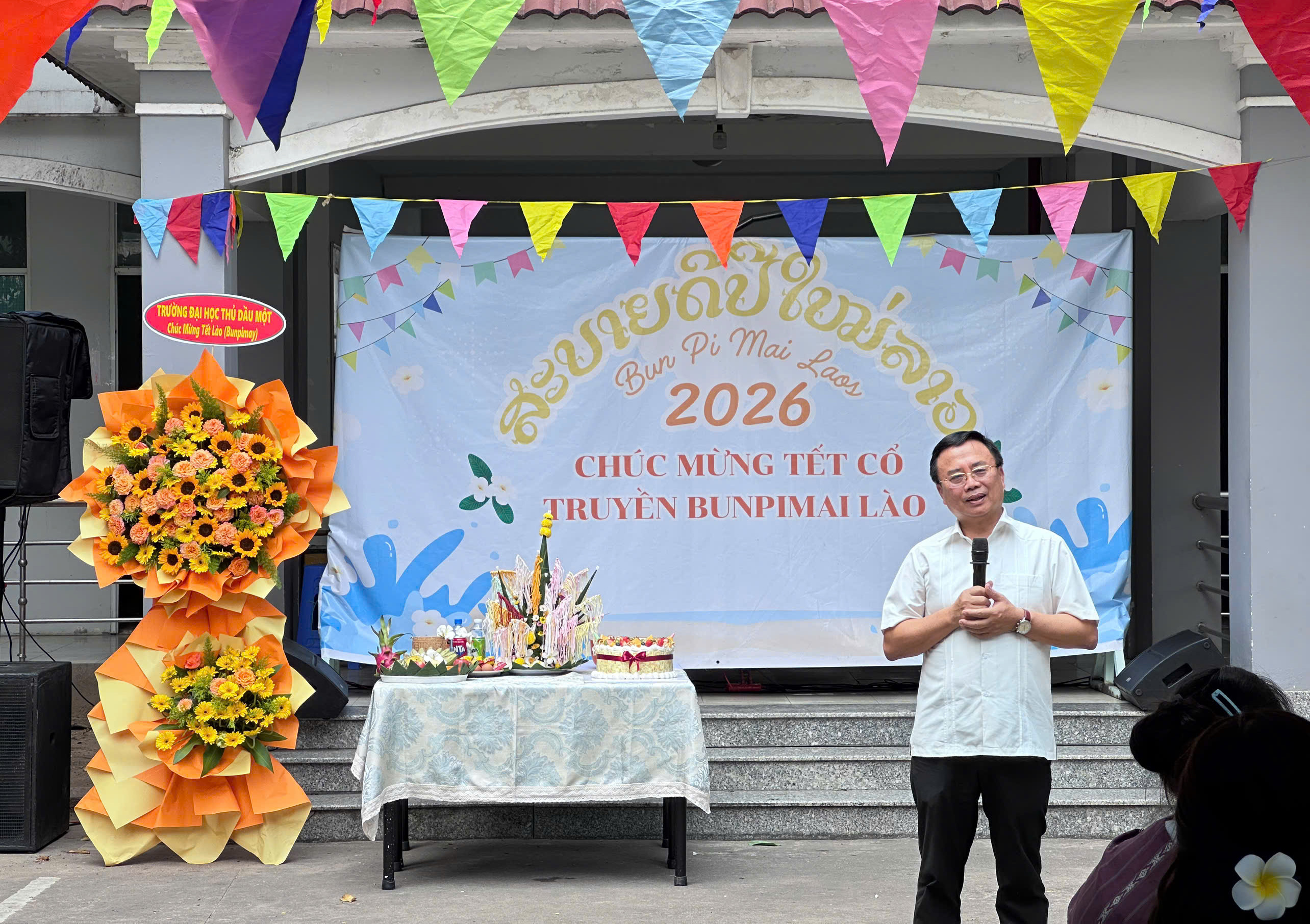 Ngày 18/4/2026, tại Học viện Cán bộ TP. Hồ Chí Minh (cơ sở 2), Trường Đại học Thủ Dầu Một tổ chức chương trình chúc mừng Tết cổ truyền Bunpimay năm 2026 trong không khí trang trọng, ấm áp, đậm đà bản sắc văn hóa truyền thống của đất nước Lào.