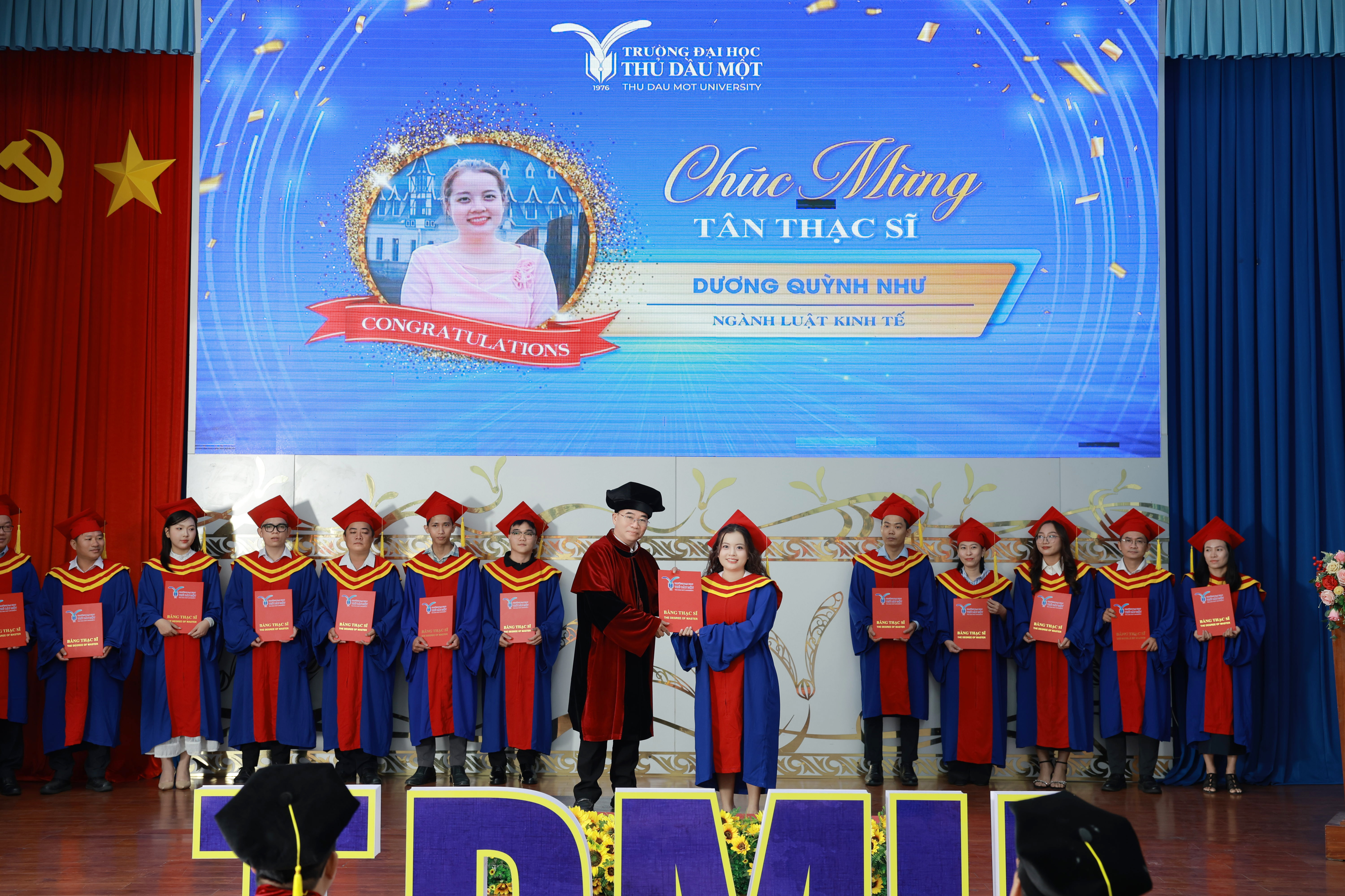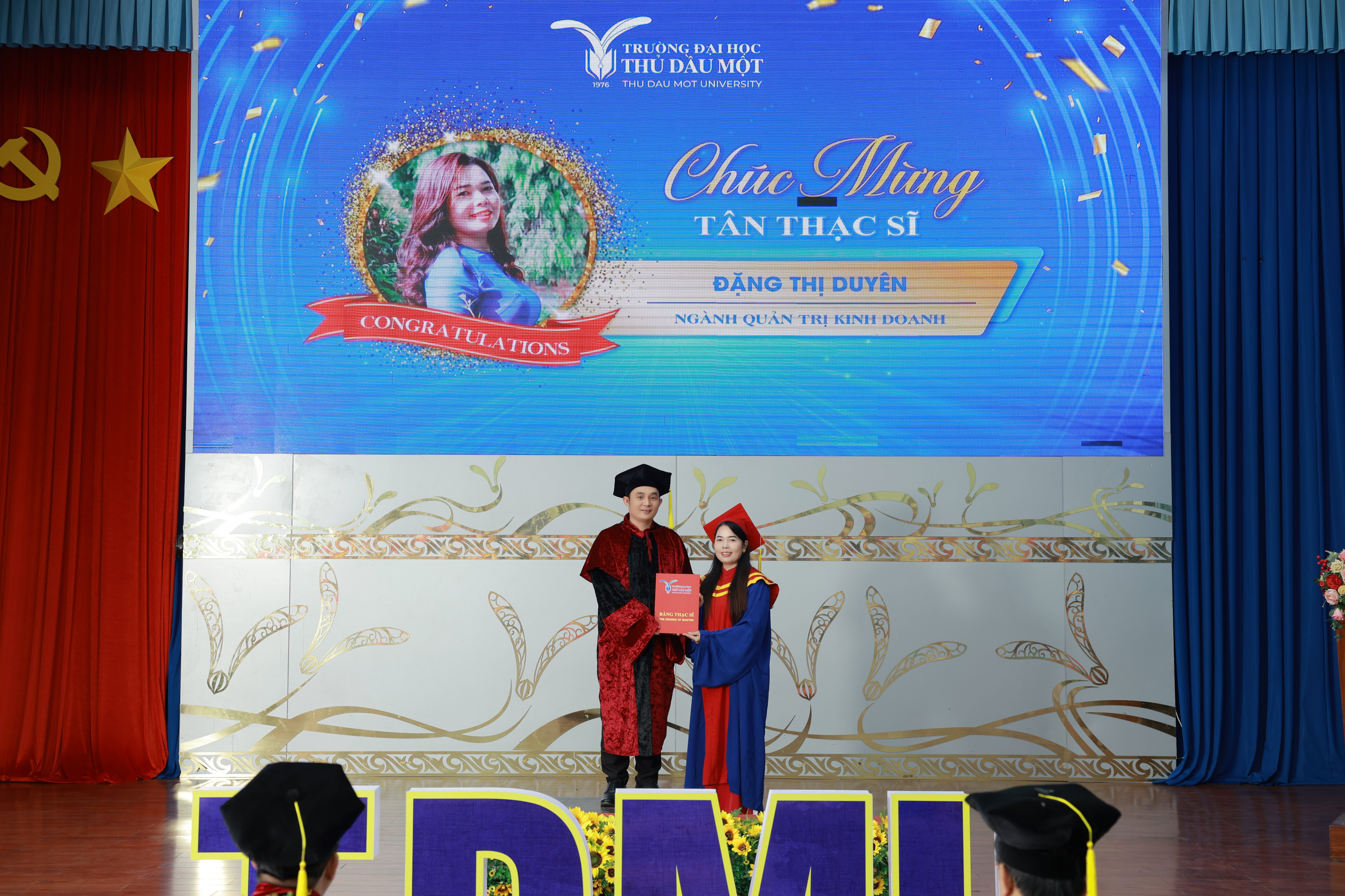 Kể từ năm 2015, Trường Đại học Thủ Dầu Một triển khai tuyển sinh và đào tạo sau đại học, đến nay đã đào tạo được 1.224 thạc sĩ và tiến sĩ. Đội ngũ học viên sau khi tốt nghiệp đã và đang công tác, cống hiến trong nhiều lĩnh vực chuyên môn, đóng góp tích cực cho sự phát triển kinh tế – xã hội của TP. Hồ Chí Minh, vùng Đông Nam Bộ và cả nước, qua đó khẳng định uy tín và chất lượng đào tạo sau đại học của nhà trường. Phát huy những kết quả đạt được trong công tác đào tạo sau đại học, tại buổi lễ, Trường Đại học Thủ Dầu Một đã công bố Quyết định công nhận tốt nghiệp và trao bằng thạc sĩ cho 93 học viên cao học thuộc 10 ngành đào tạo, gồm: Quản trị kinh doanh, Hệ thống thông tin, Luật kinh tế, Kế toán, Tài chính – Ngân hàng, Khoa học môi trường, Ngôn ngữ Anh, Quản lý giáo dục, Lịch sử Việt Nam và Văn học Việt Nam.