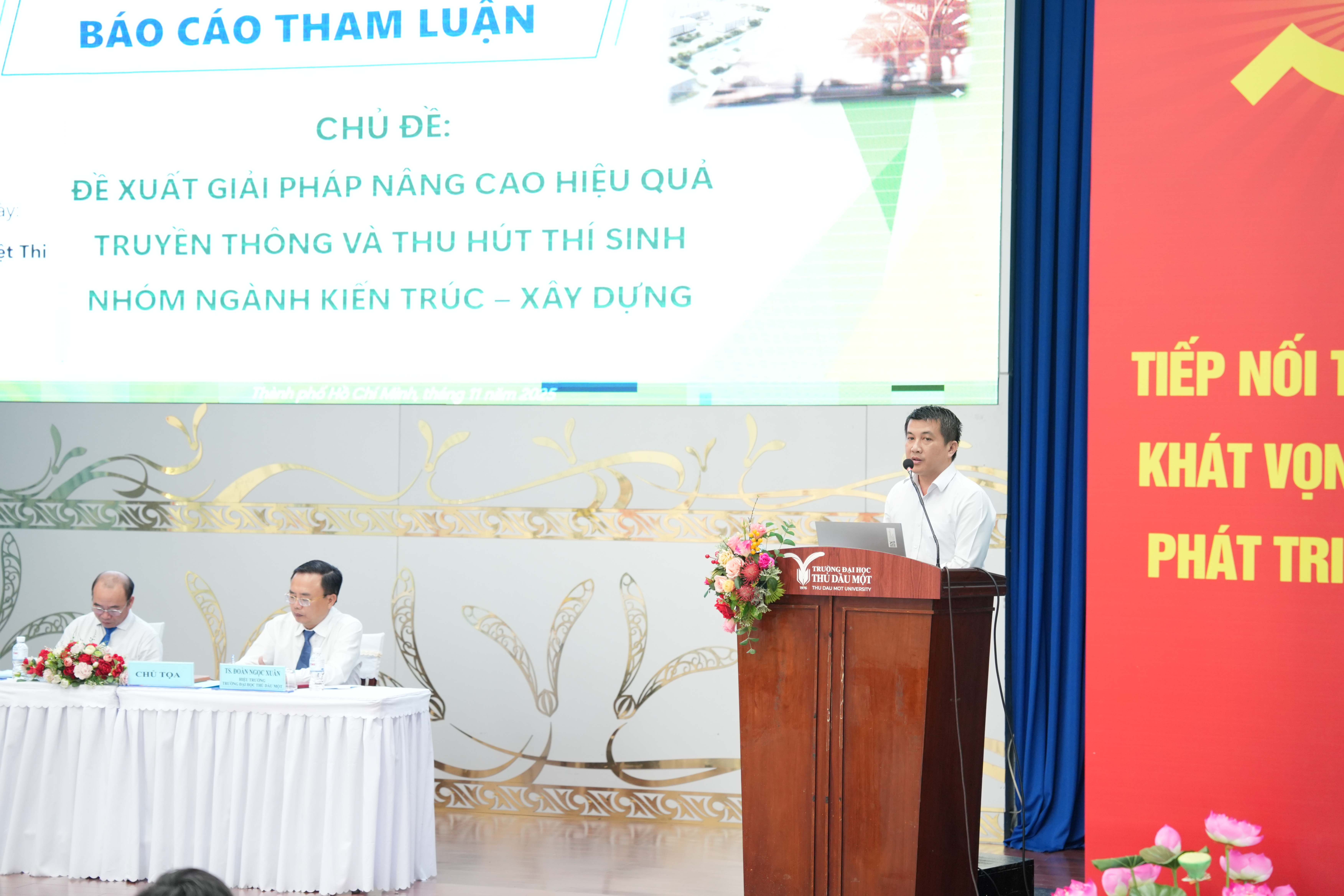 TS. Bùi Việt Thi - Trưởng khoa Kiến trúc - Xây dựng, Viện trưởng Viện Đào tạo Kiến trúc - Xây dựng và Giao thông phát biểu đề xuất các giải pháp nâng cao hiệu quả công tác tuyển sinh nhóm ngành Kiến trúc - Xây dựng