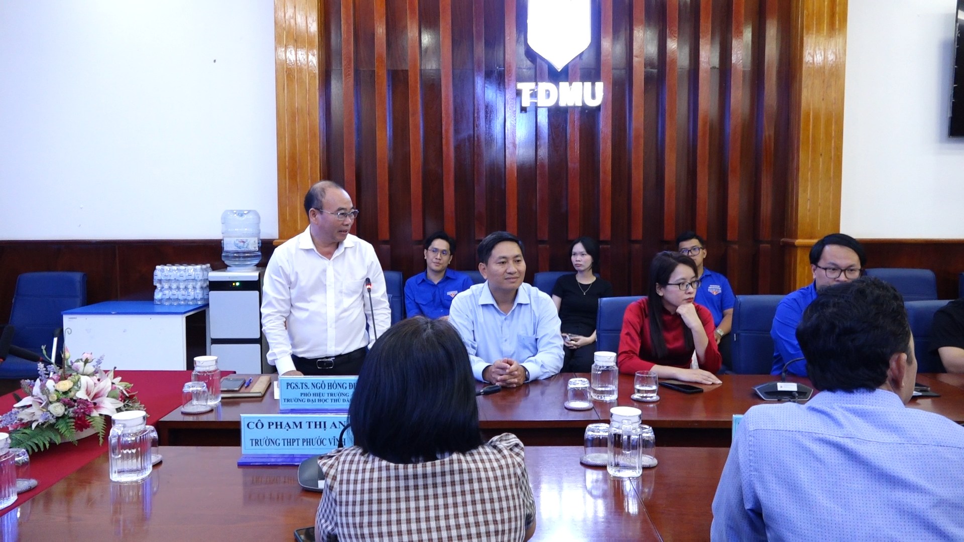 Phát biểu tại buổi gặp gỡ, PGS.TS. Ngô Hồng Điệp – Phó Hiệu trưởng Một bày tỏ niềm vui khi được đón tiếp đoàn học sinh Trường THPT Phước Vĩnh đến tham quan, tìm hiểu môi trường học tập của nhà trường. Thầy cho biết, việc tổ chức các chương trình trải nghiệm thực tế tại trường đại học là cơ hội để học sinh tiếp cận sớm với không gian học thuật, từ đó có thêm thông tin và góc nhìn thực tế trong quá trình lựa chọn ngành nghề. PGS.TS. Ngô Hồng Điệp cũng giới thiệu khái quát về định hướng đào tạo đa ngành của Trường Đại học Thủ Dầu Một, môi trường học tập gắn với nghiên cứu khoa học, đổi mới sáng tạo và nhu cầu nhân lực của xã hội. Thầy kỳ vọng chuyến tham quan sẽ giúp các em học sinh hiểu rõ hơn về đời sống học tập tại trường đại học, nuôi dưỡng khát vọng học tập, phát triển bản thân và chuẩn bị tốt cho những lựa chọn quan trọng trong tương lai.
