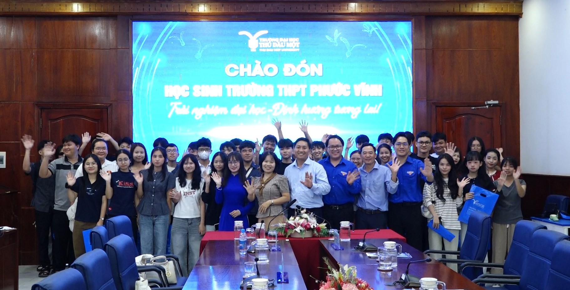 Nhằm giúp học sinh có thêm thông tin hữu ích trong việc định hướng nghề nghiệp và tìm hiểu môi trường học tập bậc đại học, Trường Đại học Thủ Dầu Một đã tổ chức chương trình đón tiếp và giao lưu với đoàn học sinh Trường THPT Phước Vĩnh đến tham quan, trải nghiệm tại trường.