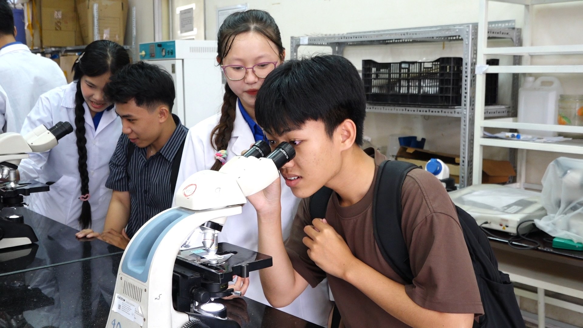 Trong khuôn khổ chương trình, các em học sinh còn được tham gia nhiều hoạt động trải nghiệm thực tế tại các phòng thí nghiệm và không gian học tập của nhà trường. Học sinh được quan sát tiêu bản dưới kính hiển vi, tìm hiểu kỹ thuật nuôi cấy mô, theo dõi các phản ứng hóa học tạo màu trong phòng thí nghiệm, đồng thời tham quan phòng trưng bày các sản phẩm khoa học – công nghệ do giảng viên và sinh viên nhà trường thực hiện. Bên cạnh đó, đoàn cũng tham quan khuôn viên Trường Đại học Thủ Dầu Một để cảm nhận trực tiếp môi trường học tập, nghiên cứu tại trường.