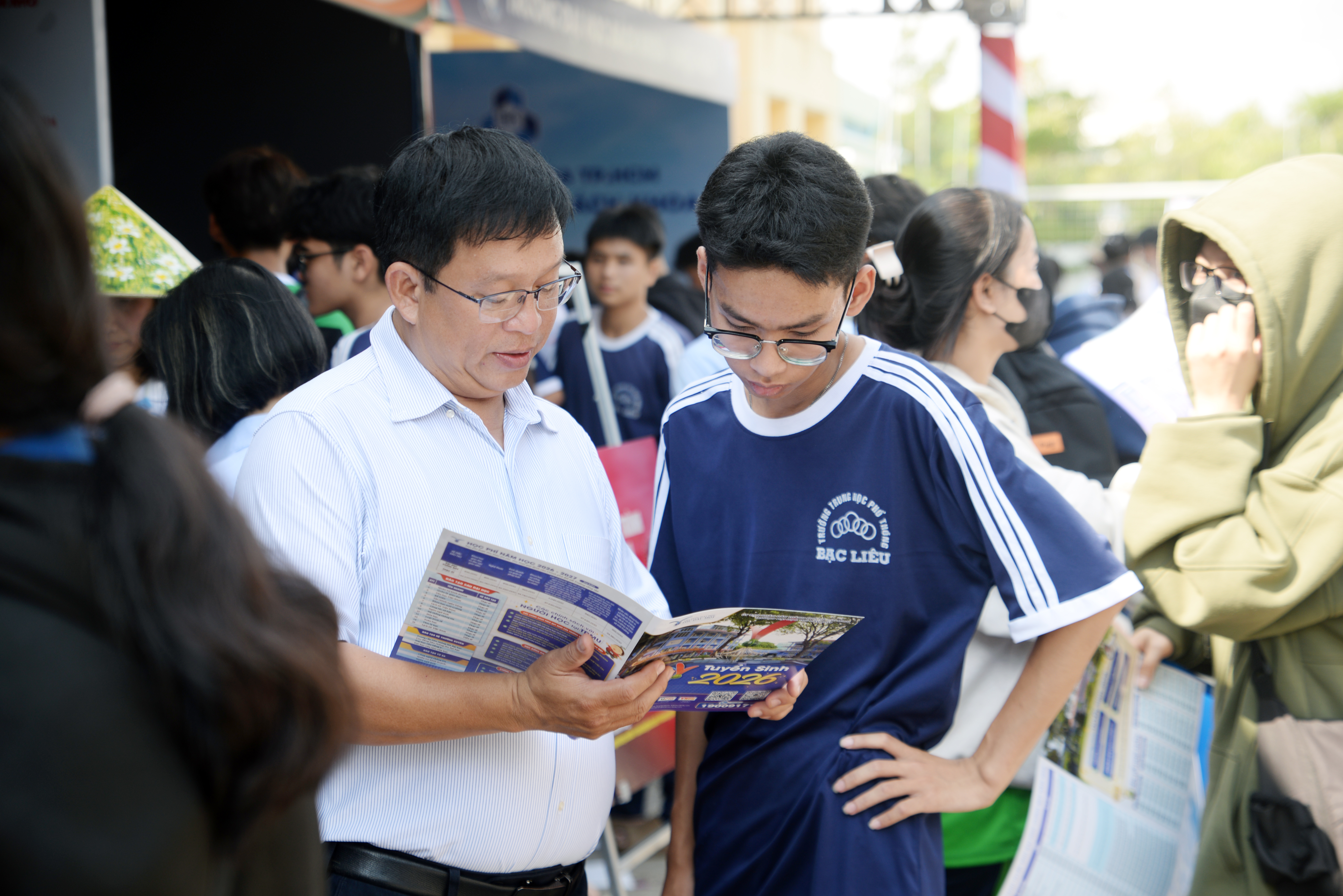 Đoàn công tác của nhà trường, với sự tham gia của PGS.TS Lê Tuấn Anh – Bí thư Đảng ủy và PGS.TS Ngô Hồng Điệp – Phó Hiệu trưởng, đã trực tiếp đến tư vấn tại Trường THPT Trần Văn Thời và Trường THPT Bạc Liêu (Cà Mau). Tại các điểm trường, học sinh được tiếp cận hệ thống thông tin tuyển sinh năm 2026 một cách đầy đủ và cập nhật, bao gồm phương thức xét tuyển, tổ hợp môn, chỉ tiêu tuyển sinh cũng như những điểm điều chỉnh trong quy chế. Không khí tư vấn diễn ra sôi nổi với sự tham gia chủ động của học sinh thông qua nhiều câu hỏi liên quan đến ngành học, môi trường đào tạo và triển vọng nghề nghiệp.