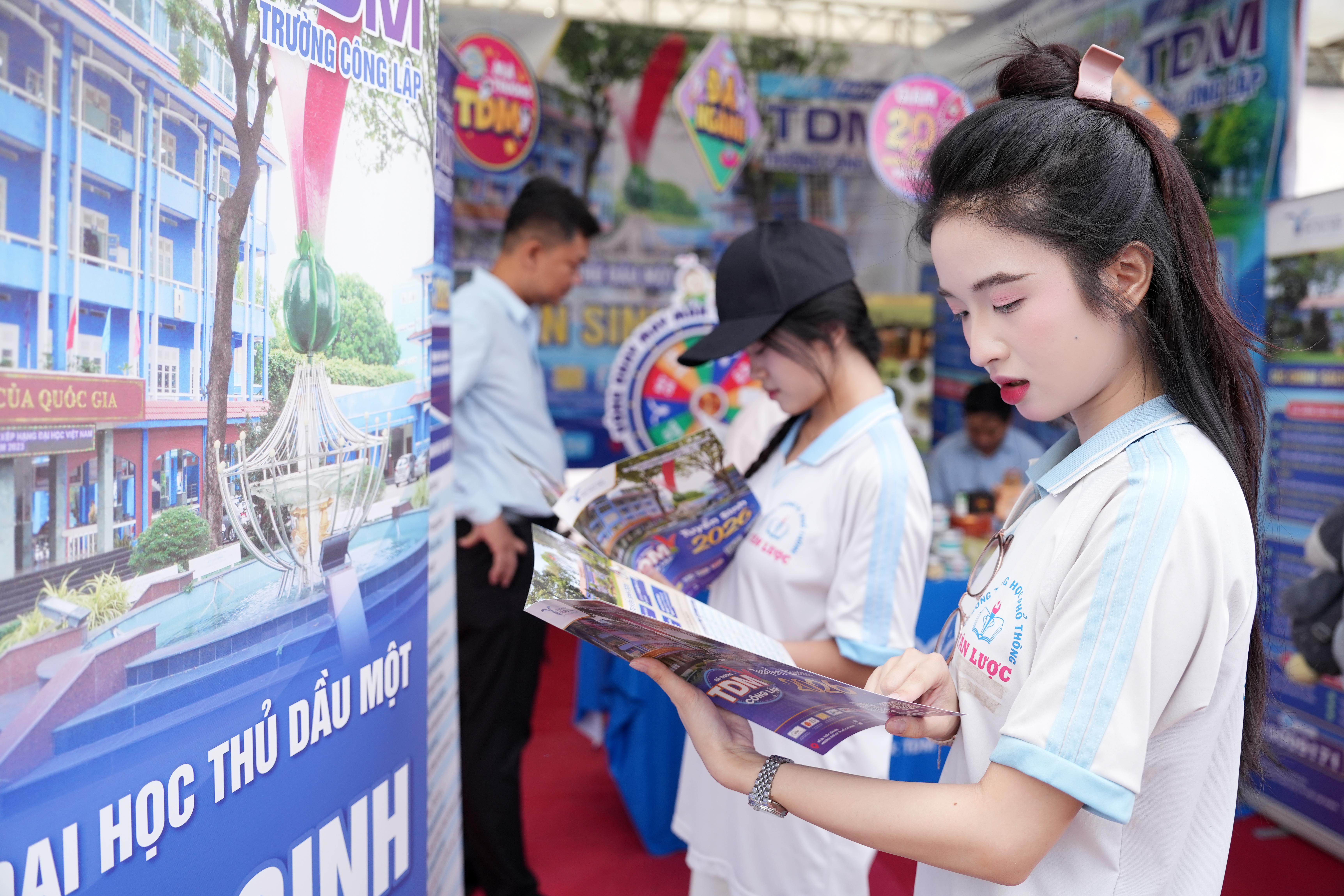 Bên cạnh phần tư vấn chung tại sân khấu chính với sự tham gia của đại diện Bộ Giáo dục và Đào tạo cùng các chuyên gia giáo dục, khu vực gian hàng của các trường đại học cũng thu hút đông đảo học sinh đến tìm hiểu thông tin. Trong đó, gian tư vấn của Trường Đại học Thủ Dầu Một nhận được sự quan tâm của nhiều học sinh khi liên tục có các nhóm học sinh đến trao đổi trực tiếp với giảng viên và cán bộ tư vấn của nhà trường.