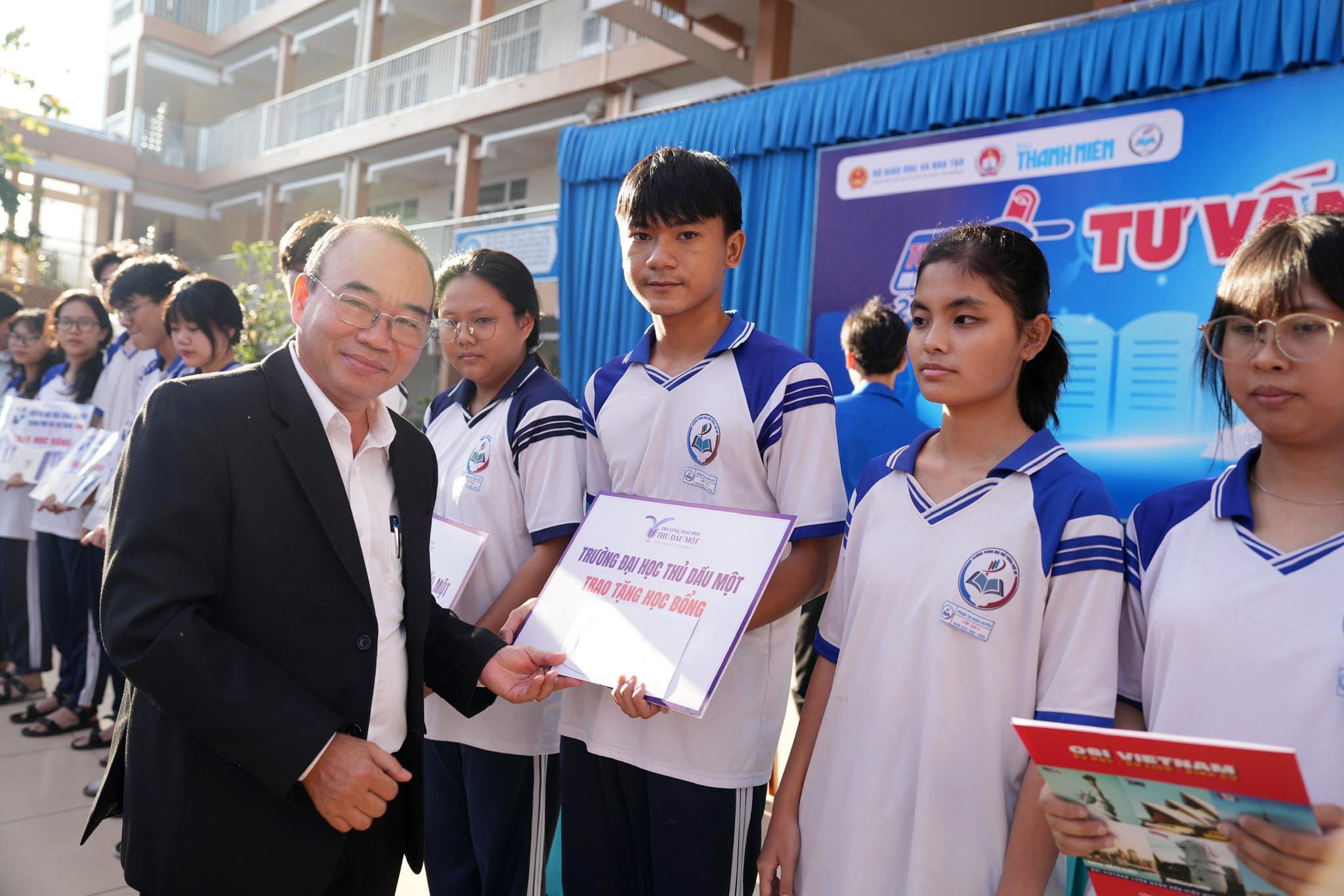 Chương trình thu hút đông đảo học sinh lớp 12 tham gia tìm hiểu thông tin tuyển sinh và định hướng ngành nghề. Đồng hành cùng các em trong mùa tuyển sinh 2026, Trường Đại học Thủ Dầu Một đã giới thiệu những thông tin tuyển sinh mới nhất, bao gồm các ngành đào tạo, phương thức xét tuyển, mức học phí, chính sách học bổng và cơ hội việc làm sau khi tốt nghiệp. Đồng thời, đội ngũ tư vấn của nhà trường trực tiếp trao đổi, giải đáp thắc mắc và hỗ trợ học sinh lựa chọn ngành học phù hợp với năng lực, sở thích cũng như xu hướng phát triển của thị trường lao động trong thời gian tới.