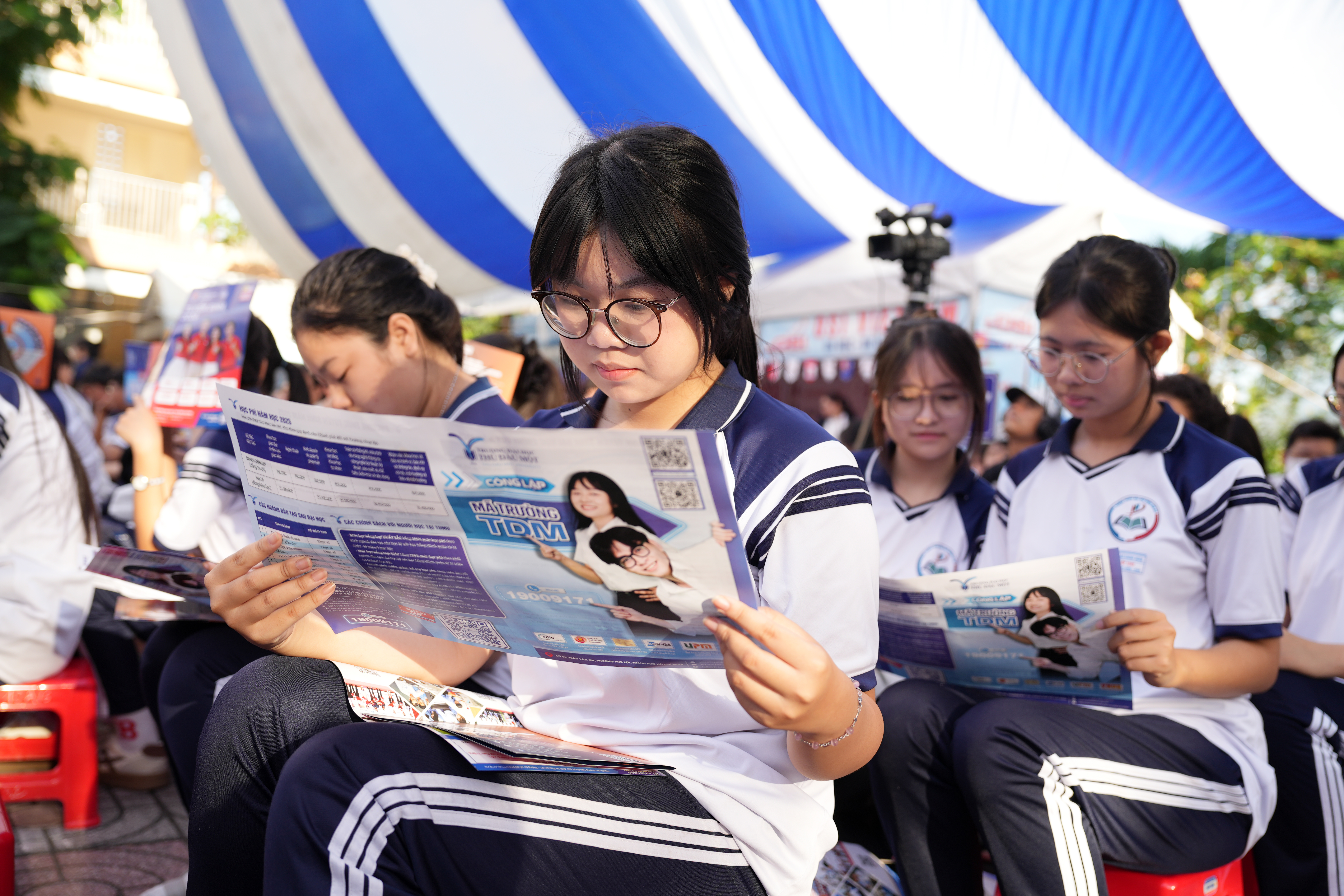 Đội ngũ tư vấn của nhà trường trực tiếp trao đổi, giải đáp thắc mắc và hỗ trợ học sinh lựa chọn ngành học phù hợp với năng lực, sở thích cũng như xu hướng phát triển của thị trường lao động trong thời gian tới
