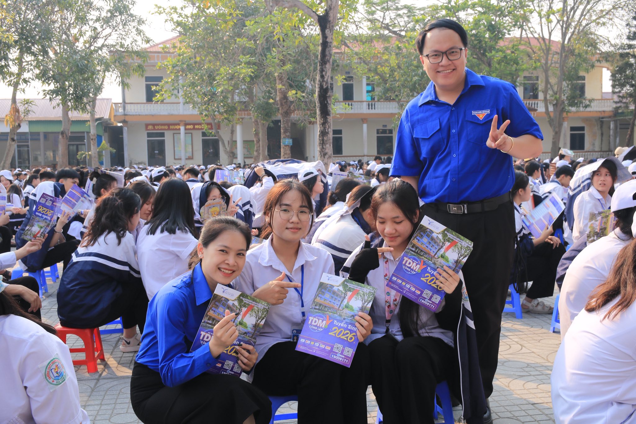Sáng 06/4/2026, Đoàn Thanh niên – Hội Sinh viên Trường Đại học Thủ Dầu Một tổ chức chương trình tư vấn tuyển sinh, định hướng nghề nghiệp kết hợp trao học bổng tại Trường THPT Nguyễn Văn Trỗi (xã Mai Phụ, Hà Tĩnh), thu hút sự tham gia của đông đảo học sinh.
